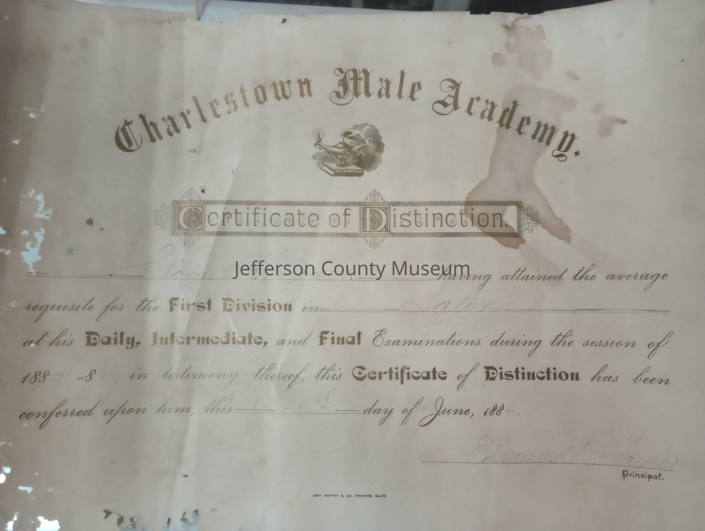 Certificate of Distinction for Latin from the Charles Town Male Academy, awarded to George Bowers.Acquisition