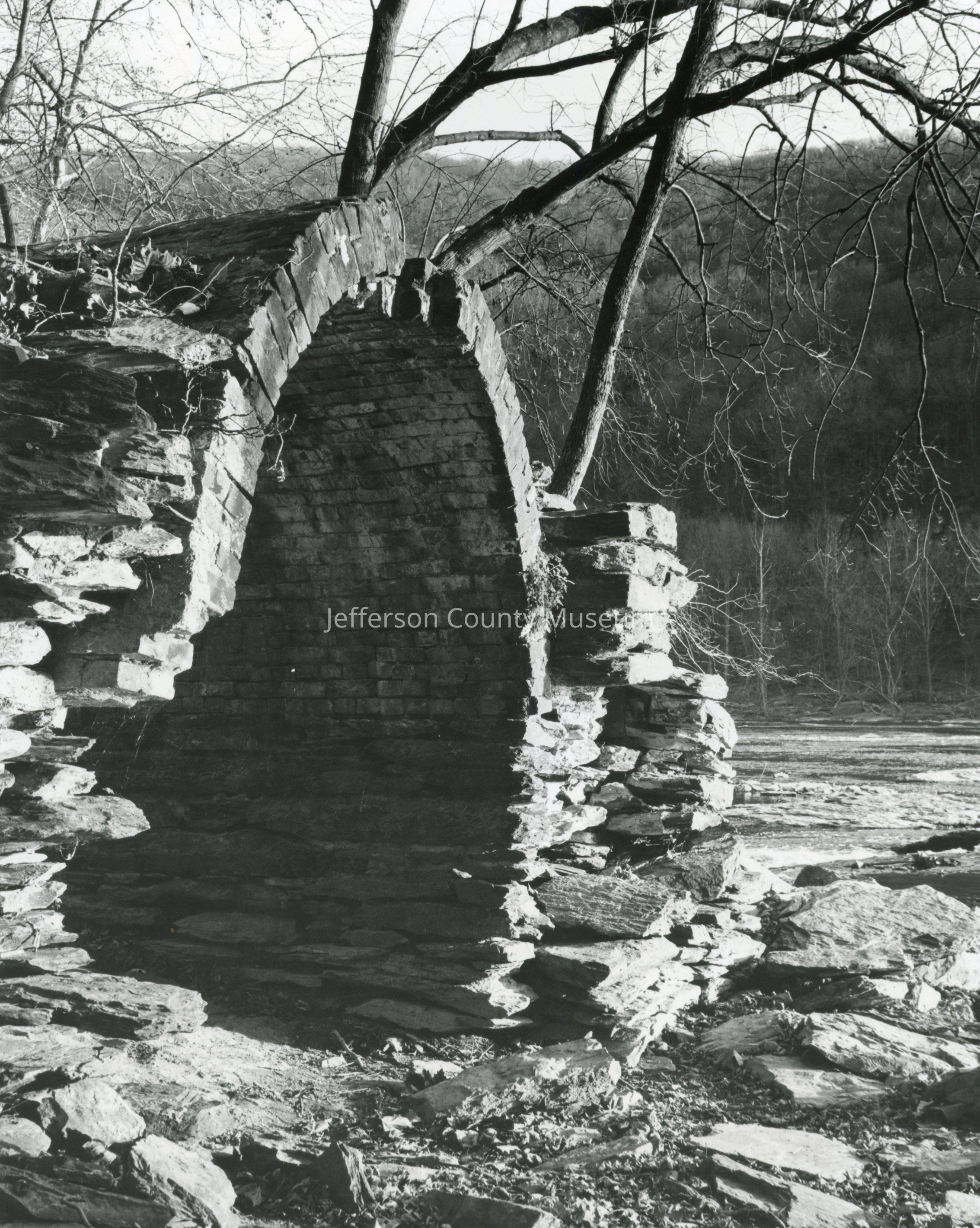 Intake arches on Virginius Island. View of the arch closest to the Shenandoah River on the upstream (western) side.