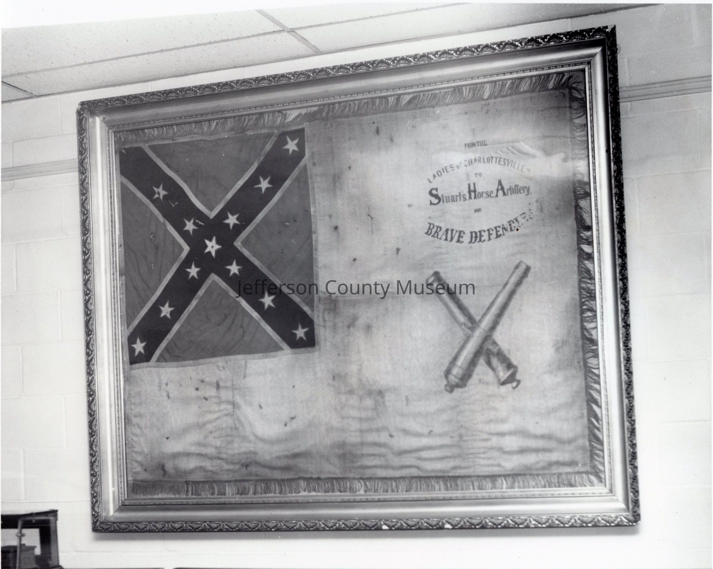 Stuart Horse Artillery flag. This flag, a Second National Confederate flag, was presented along with other accolades to the men of Stuart Horse Artillery, Brave Defenders, by the Ladies of Charlottesville, Virginia, following the successful defense of Charlottesville at the Battle of Rio Hill on February 29, 1864.Acquisition