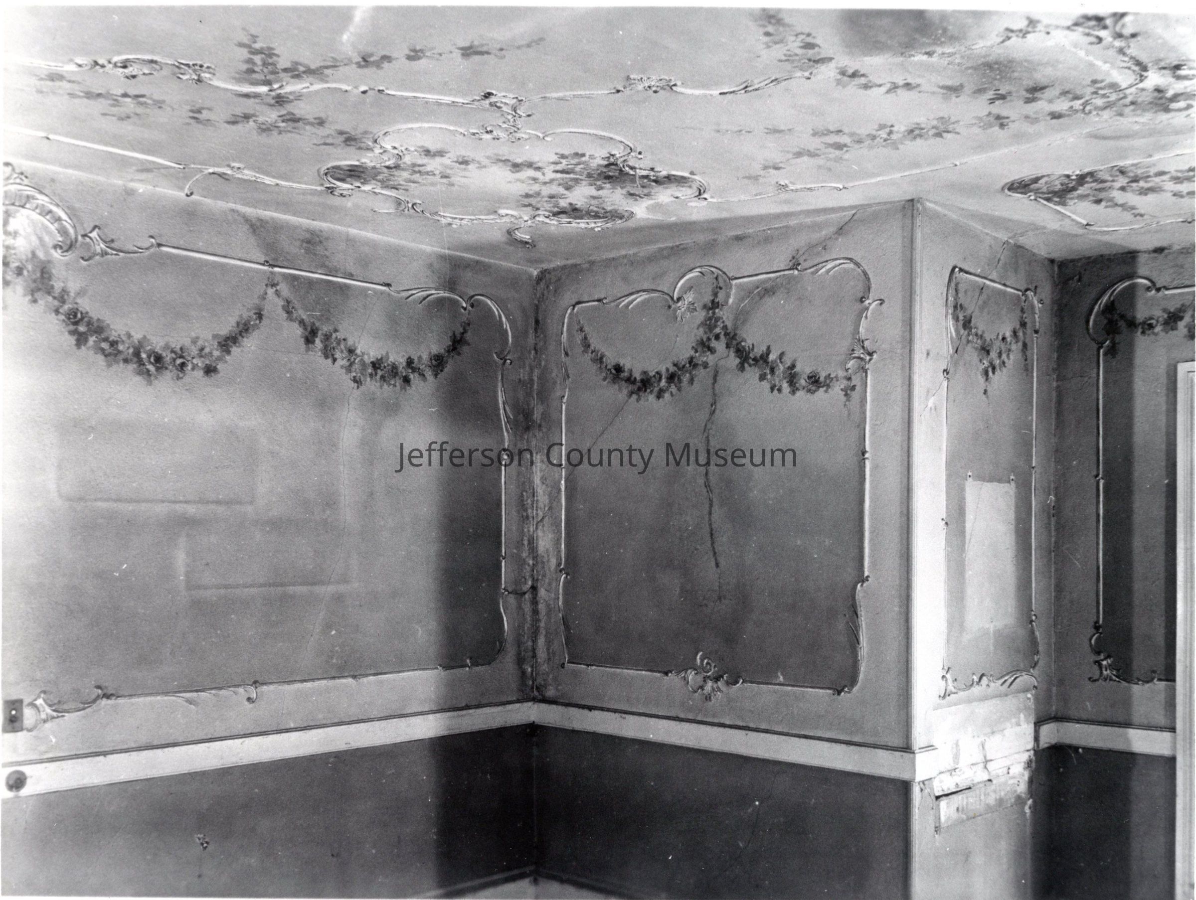 Scottish Castle built on Bolivar Heights c. 1891 by Colonel Whitman. View of the interior of the second floor showing wall murals.