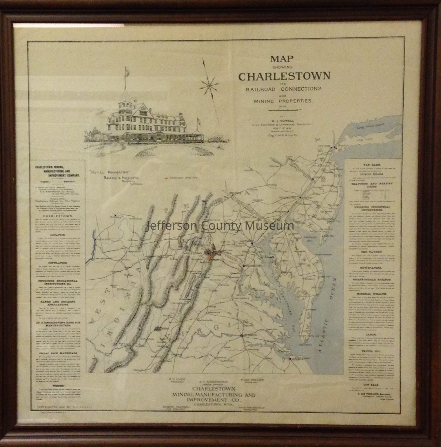 Charles Town, West Virginia, and surrounding areas of Pennsylvania, New Jersey, Maryland, Virginia, and West Virginia showing railroad connections and mining properties.