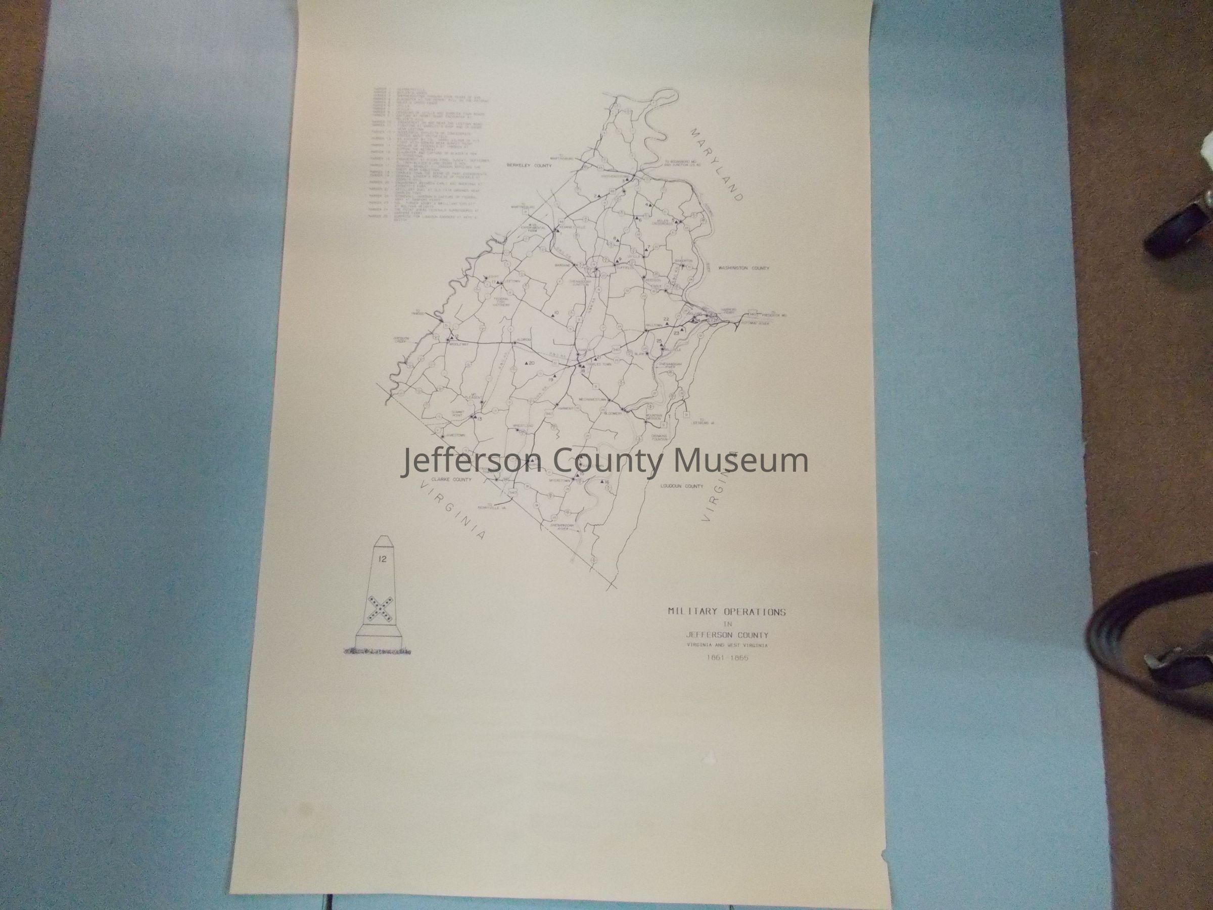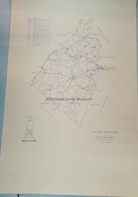Map prepared in the late 1950s, showing markers of Civil War military operations in Jefferson County, and used in the 1960 reprint of Military Operations in Jefferson County Virginia (and West Virginia).
