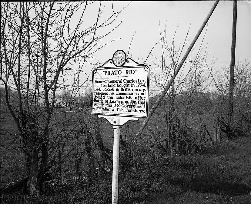 Text: Home of General Charles Lee, built on land bought in 1774. Lee, colonel in British army, resigned his commission and joined the colonists after Battle of Lexington. On this estate, the U. S. Government maintains a fish hatchery.