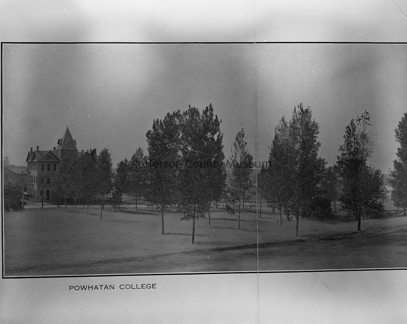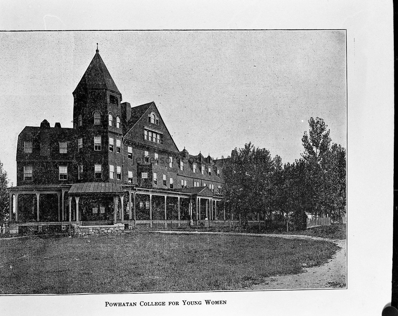 Powhatan College/St. Hilda's Hall. The original building was constructed by the Charlestown Mining, Manufacturing, and Improvement Company as the Hotel Powhatan which opened in the summer of 1892. When the CTMMI Company went bankrupt the building was sold. In 1900 Powhatan Female College opened in the old hotel building under the direction of Dr. Stewart P. Hatton. Powhatan closed in 1914. In September 1915 St. Hilda's Hall began operation under the leadership of Principal Maria Pendleton DuVal, formerly principal of Stuart's Hall. St. Hilda's Hall closed in 1931. Hotel Powhatan/Powhatan College/St. Hilda's Hall was completely destroyed by fire in December 1937. In 1948 the Charles Town General Hospital was built on a portion of that site. IMG1726, IMG1726-2, and IMG1726-5: Powhatan College. IMG1726-3 and IMG1726-4: St. Hilda's Hall.Acquisition