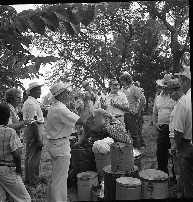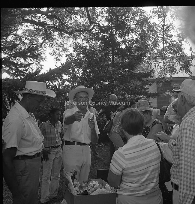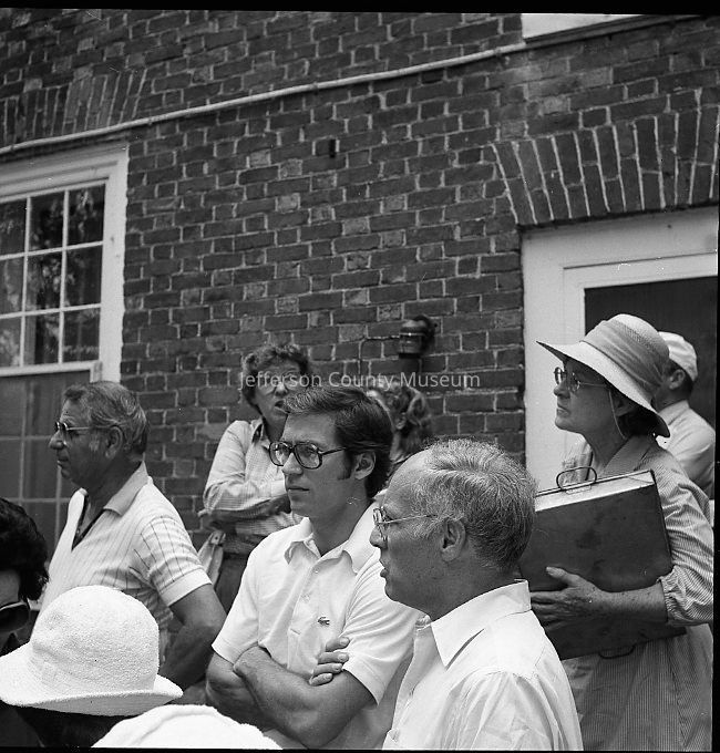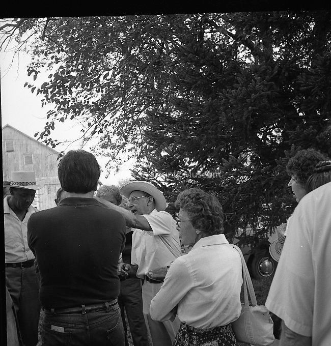 IMG1730-5: (left to right) on steps Theodore Herbert, Paul E. Miller (Executor of the Briscoe estate and auctioneer), Pete Furr, and unknown.