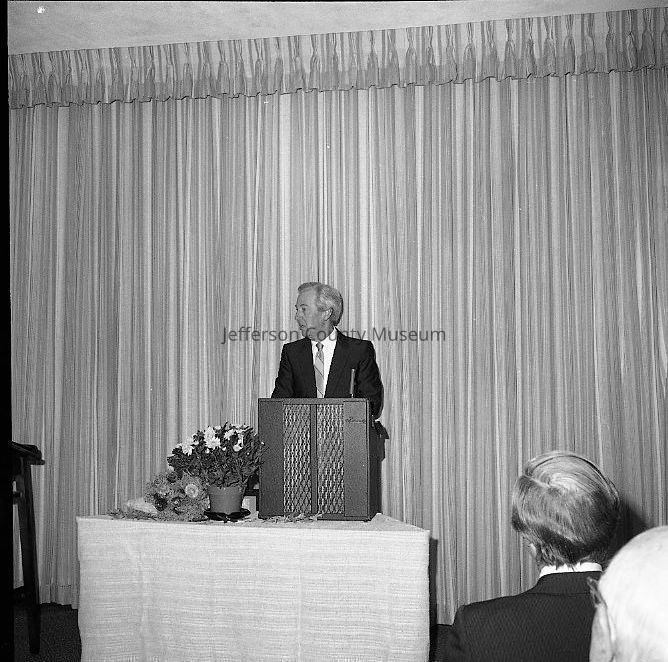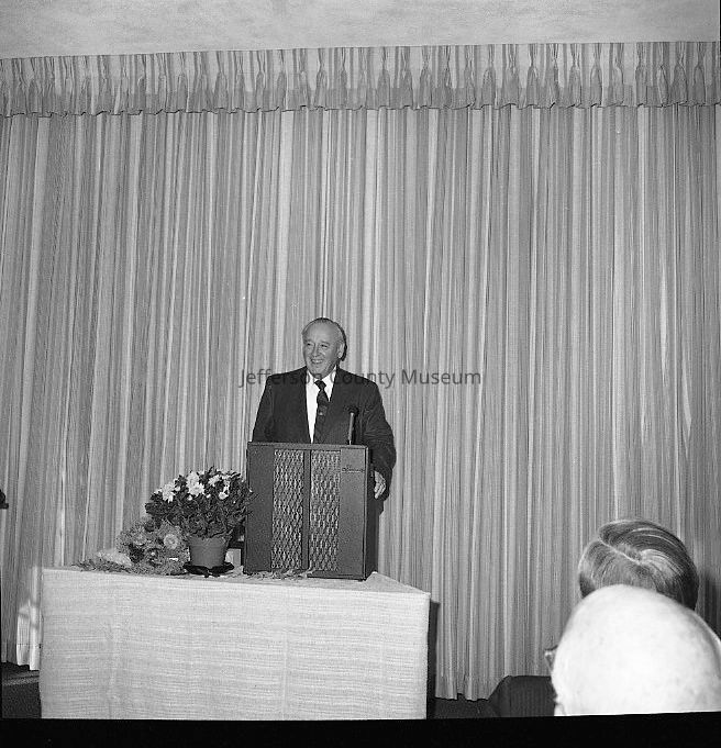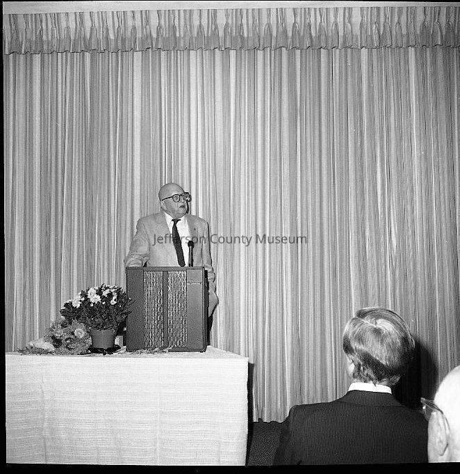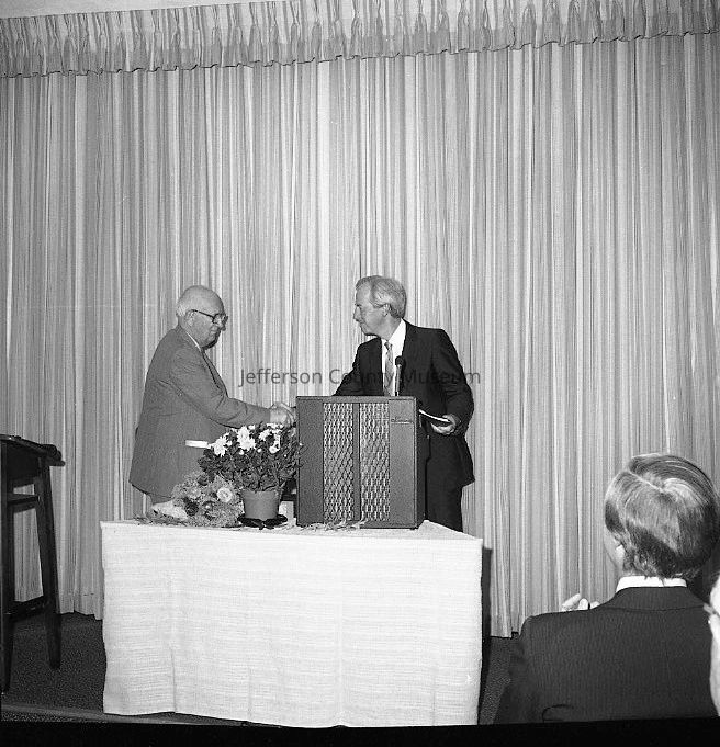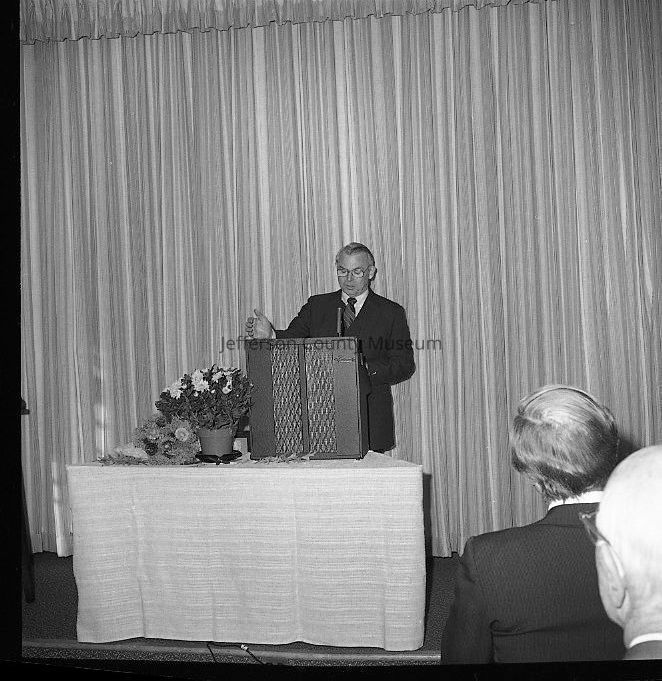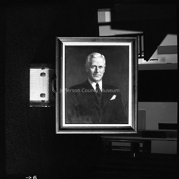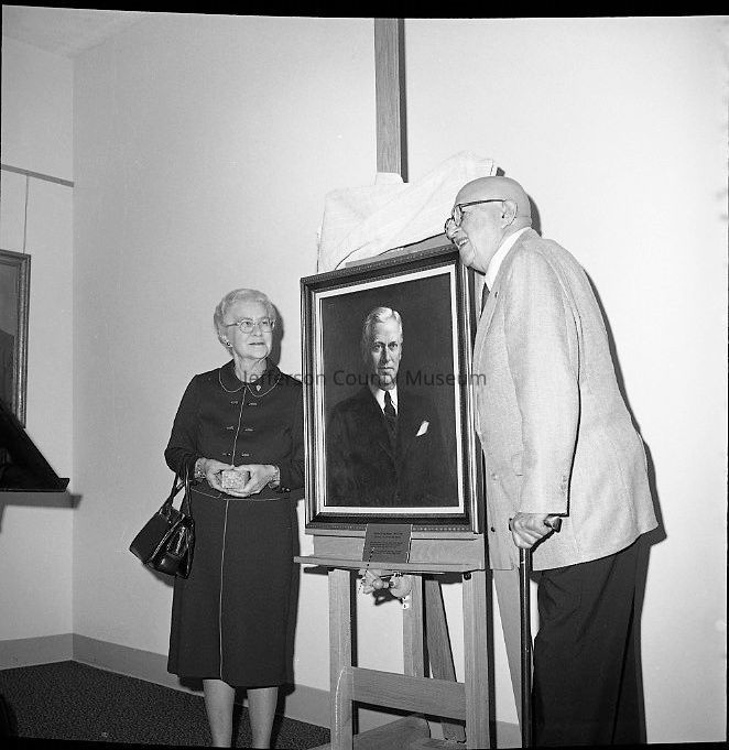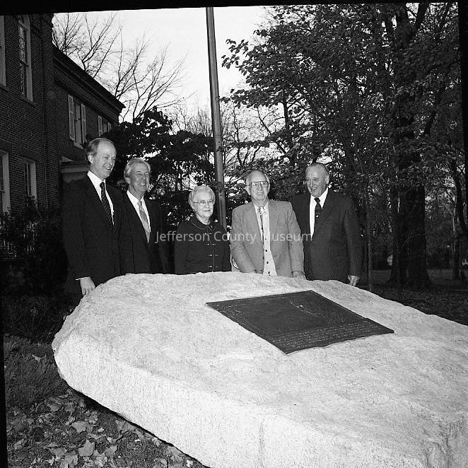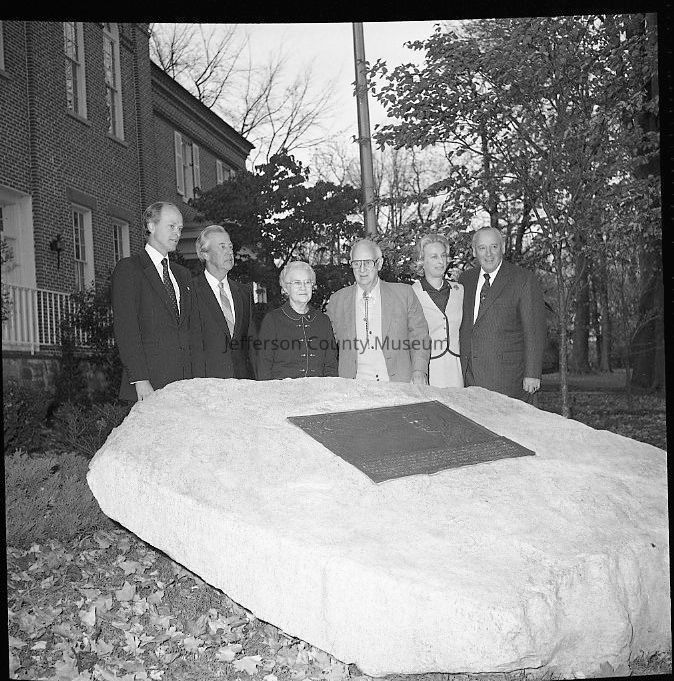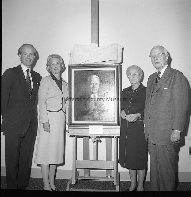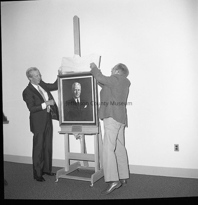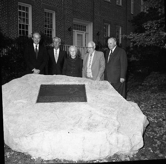 Dedication of portrait of Stephen Tyng Mather (first director of the U S National Park Service) in November 1983 on the campus of Mather Training Center in Harpers Ferry. Portrait in IMG1732 l to r: unknown; Russell E. Dickenson (National Park Service Director 1980-1985); Bertha Floy Mather McPherson (daughter S T Mather); Conrad L. Wirth (NPS Director 1951-1964); Anne McPherson Tracey (granddaughter S T Mather); and George B. Hartzog (NPS Director 1964-1972) identifies principals in attendance.