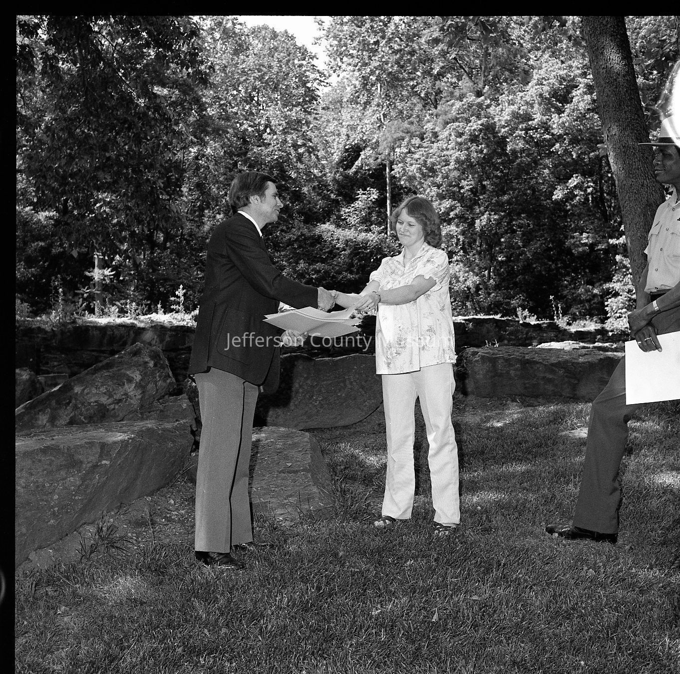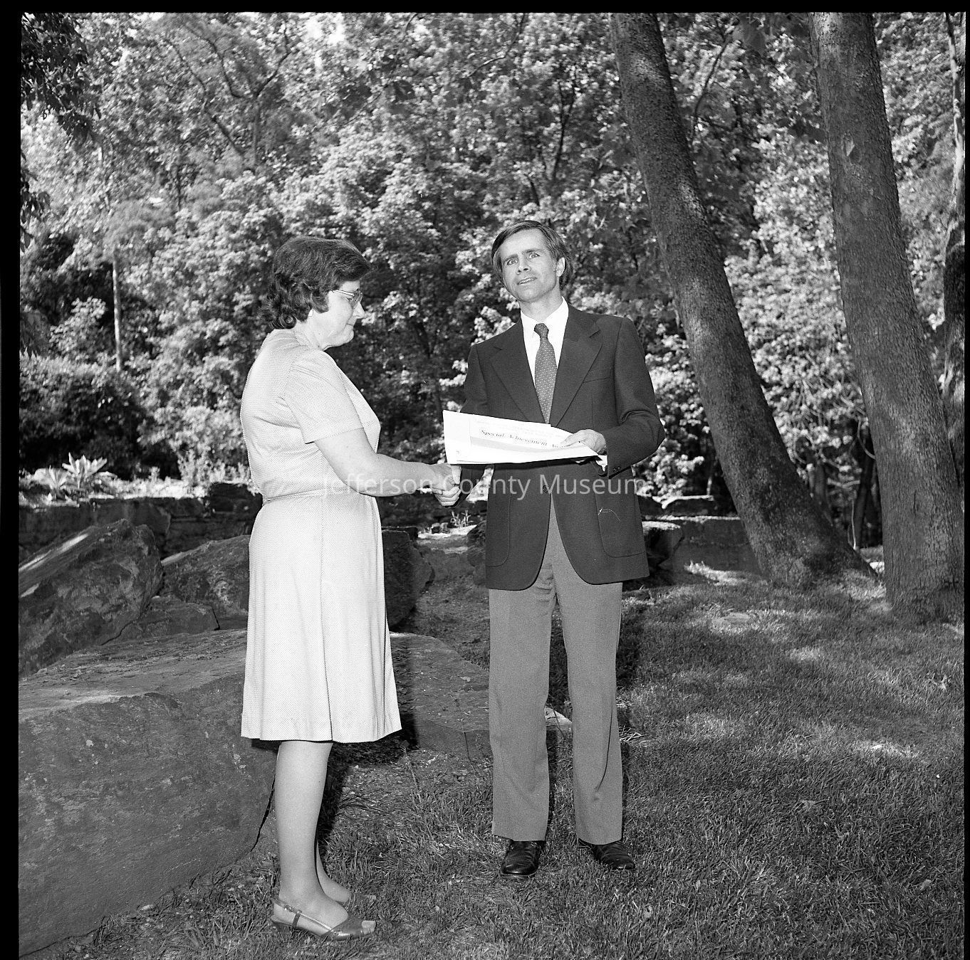 Nine (9) negatives of Superintendent Donald W. Campbell presenting awards to park employees. The first image shows Paul Lee (Chief of Interpretation 04) and Peggy Smallwood (Administrative Officer 05) and Judy Coleman (clerk 03) receiving awards from park superintendent Don Campbell. The fourth person is unidentified.