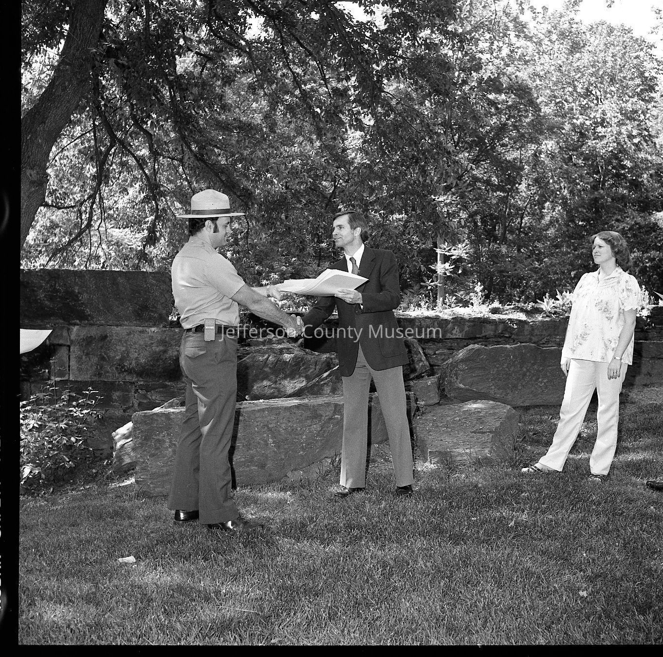 Superintendent Donald W. Campbell presenting awards to park employees