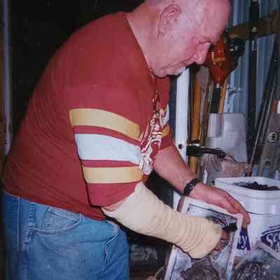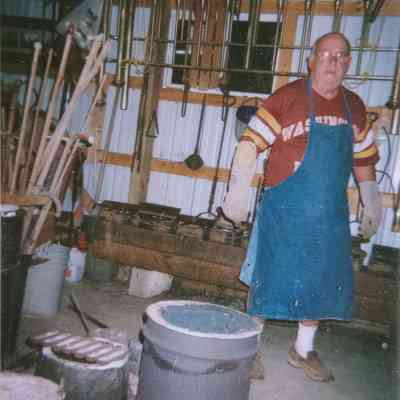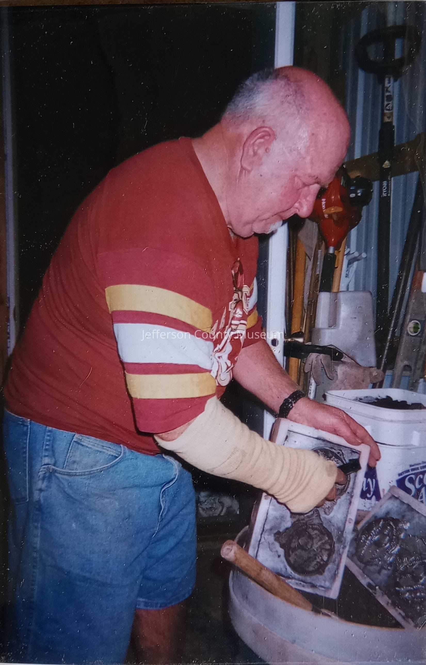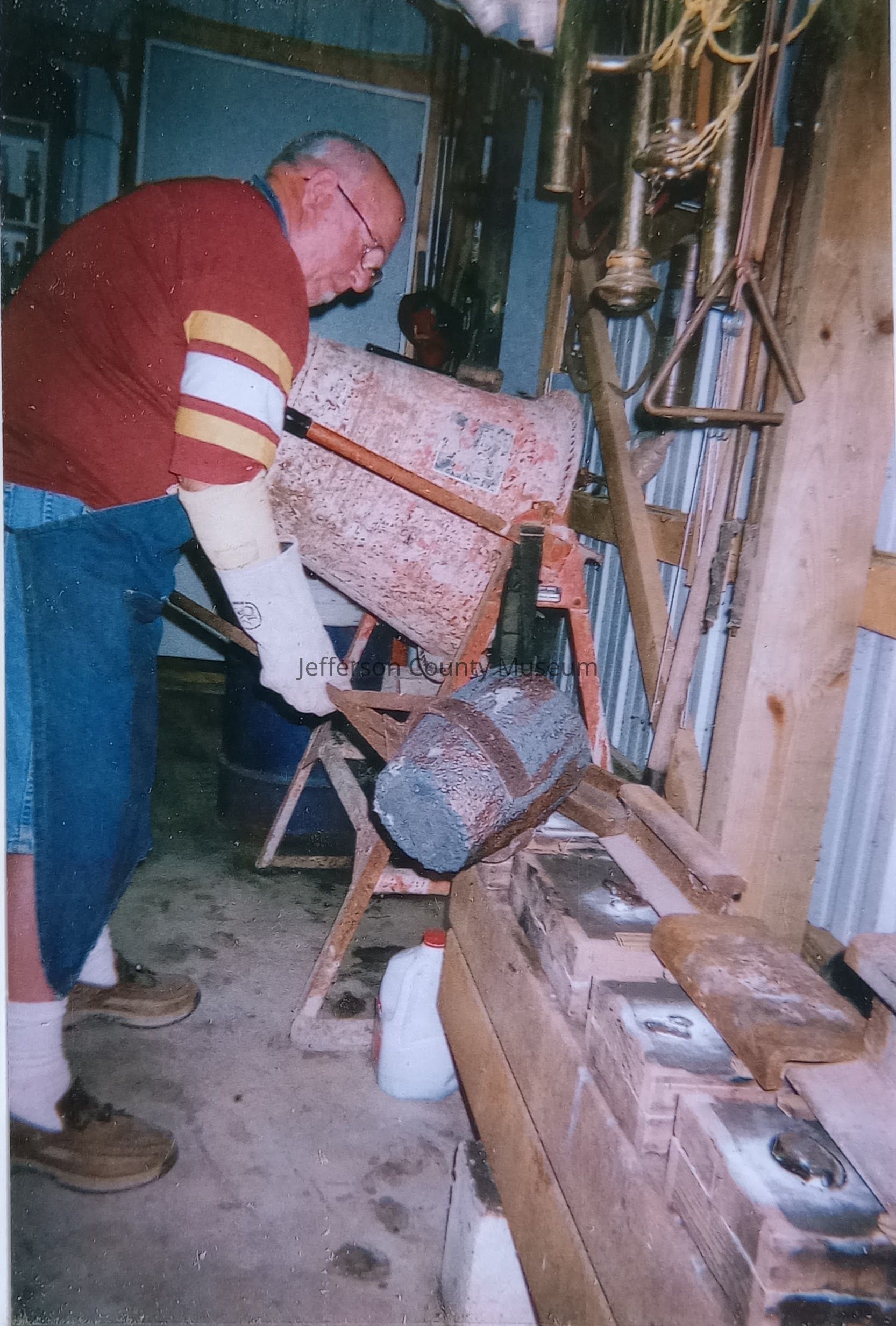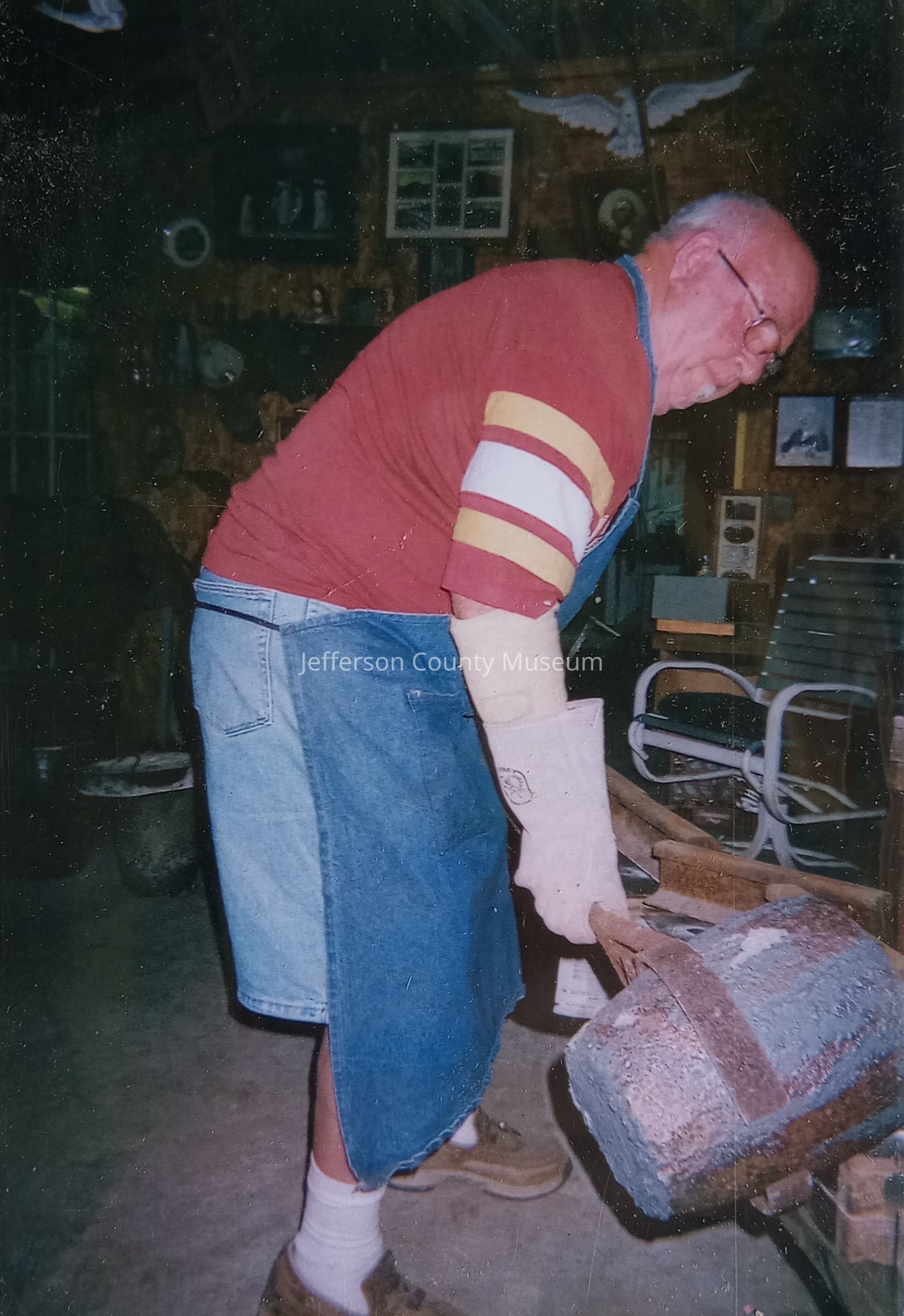 Seven (7) digital images of Bradley Baer working to create items out of brass in his home on Bloomery Road as well as other local images collected by Baer. Other photos include a 2009 Martinsburg Journal clipping about Baer's talent for metalworking, a photo of the original Dairy Queen in Ranson, and a picture of Patsy Cline, Bill Peer, Steve Lawrence, and Bobby Carter performing for WEPM radio, c. 1950s.Photograph Details