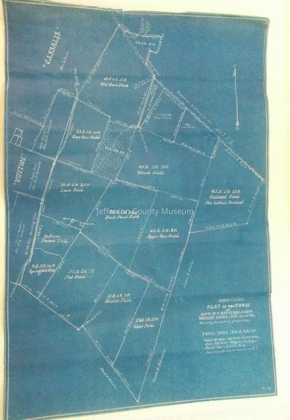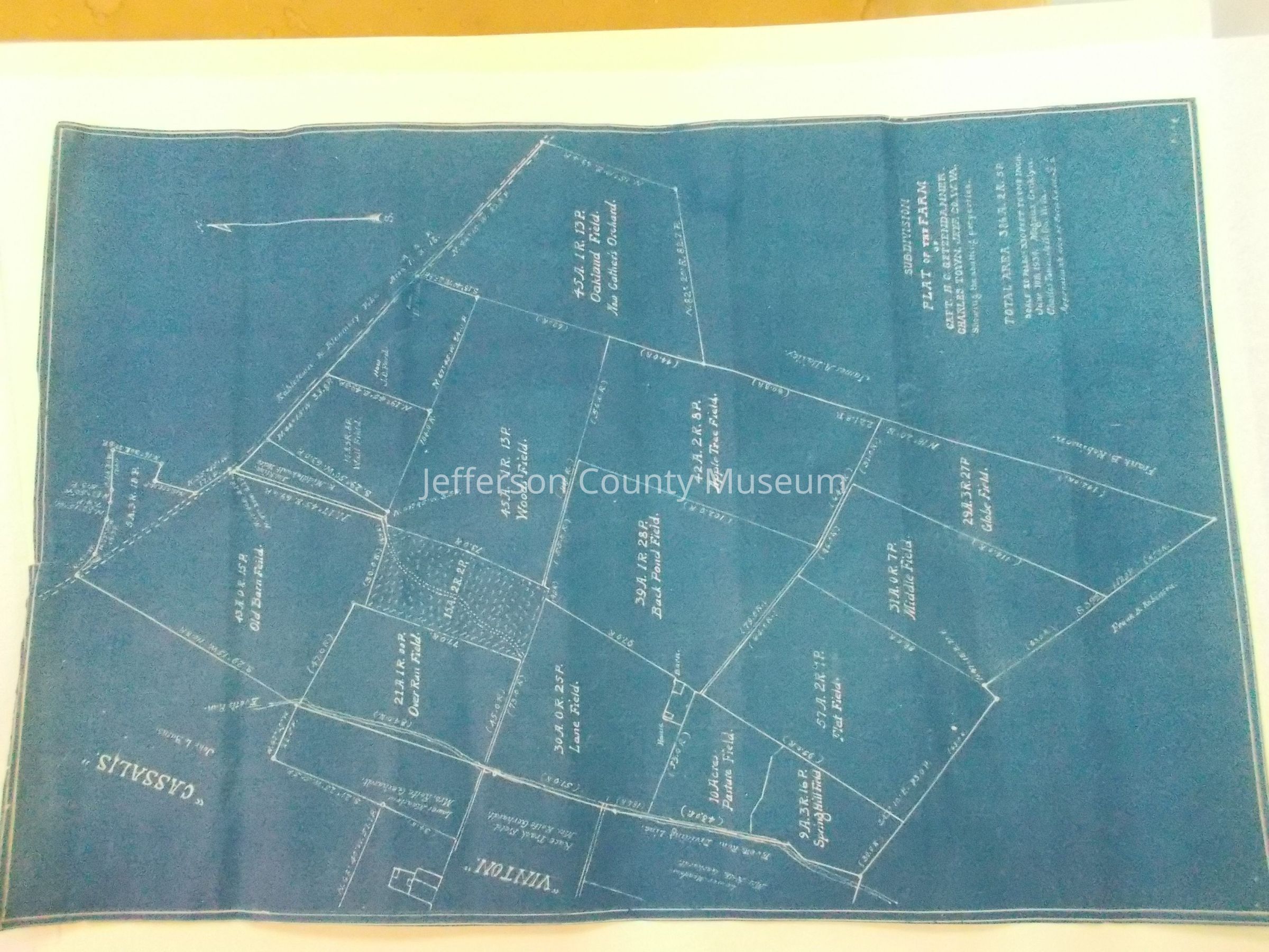 Blueprint of Getzendanner farm and abutting properties, including Vinton Farm, Cassilis, Robinson property and Dailey property. "Kabletown and Bloomery Pike" forms part of northeast boundary; Evetts [sic] Run forms boundary between Getzendanner farm and Vinton Farm.Acquisition
