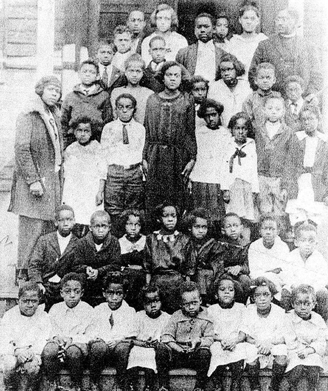 Image of African American students and teachers at St. Philip's Parochial and Industrial School.