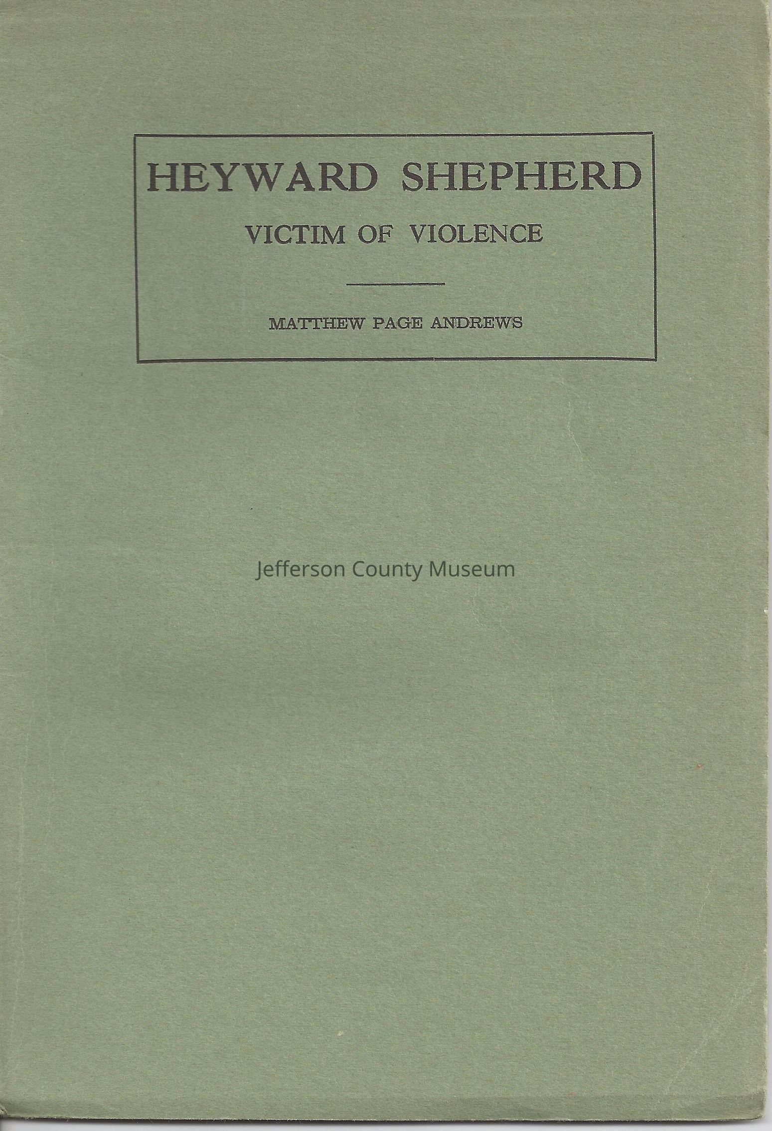 Describes the death of Shepherd who was shot by John Brown's raiders. Has a photograph of the memorial stone to Shepherd located at Harpers Ferry. Light green paperback.Acquisition