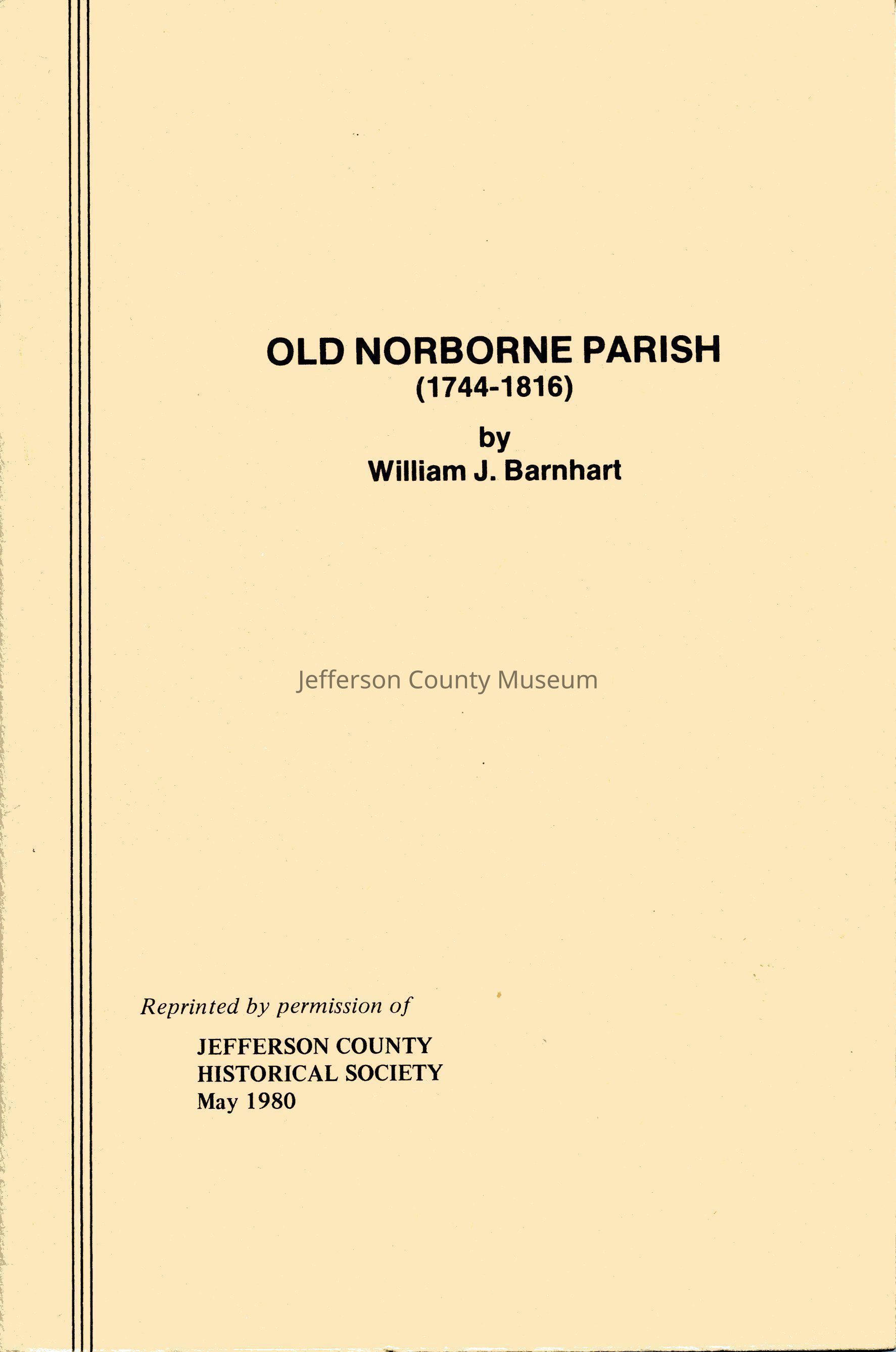 A history of Old Norborne Parish, which consisted of most of current day Jefferson and Berkeley Counties, and parts of Frederick County. Also includes some of the history of the St. George's Chapel, and other historic sites relevant to the parish.Acquisition