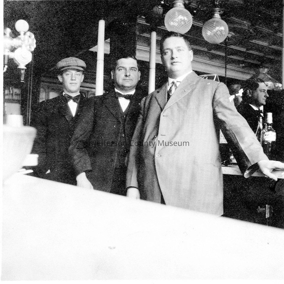 Three men in a bar Verso reads: Mrs. Theodore Brown, Charles Town, W. Va.