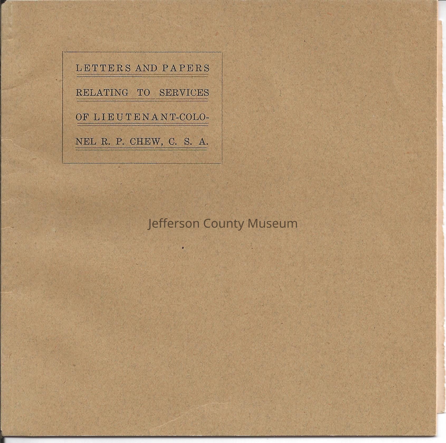 Letters of commendation for R. P. Chew's service in artillery with the Confederate Army as well as letters of recommendation by his superiors for promotion.Acquisition