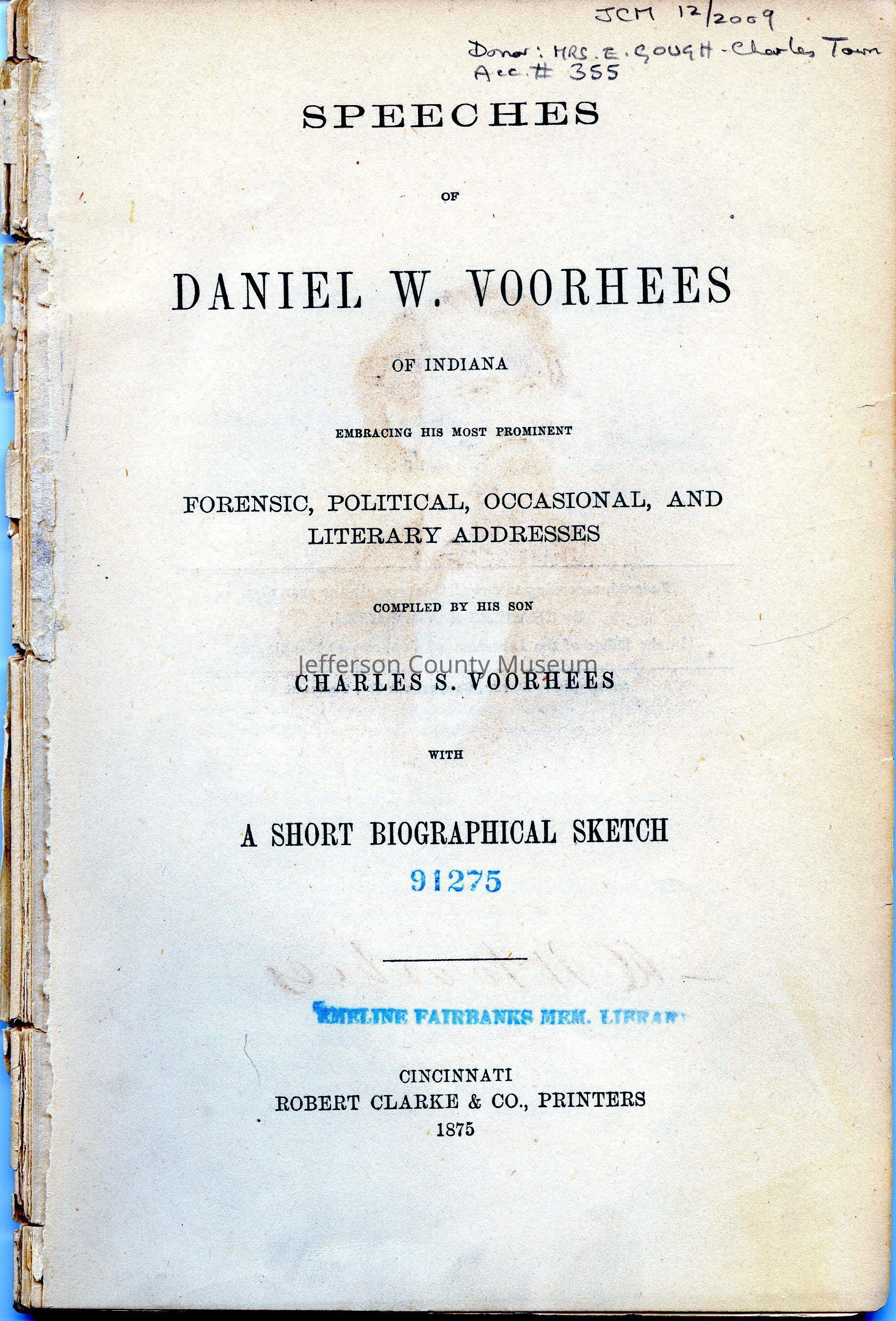 Speeches of Daniel W. Voorhees of Indiana embracing his most prominent forensic, political, occasional, and literary addressesEntry/Object ID