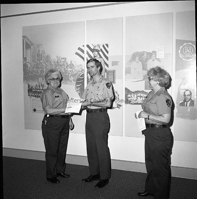 Awards presentations Harpers Ferry National Historical Park. Unknown awards presented to two (2) unidentified females by park superintendent Donald Campbell . Presentations made in the Storer College room in Wirth Hall at Mather Training Center.