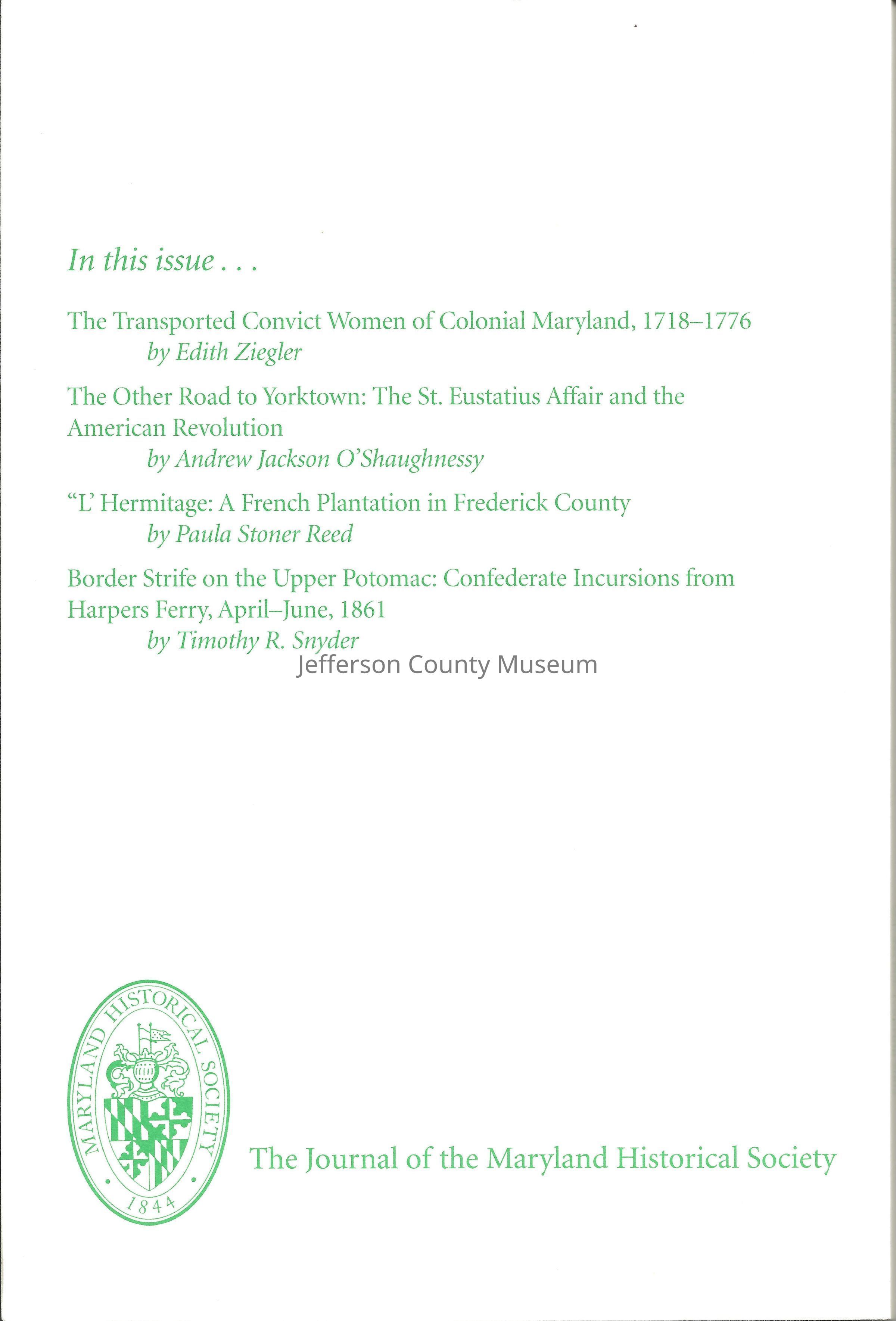 Maryland Historical Society The Journal of the Maryland Historical SocietyPublisher