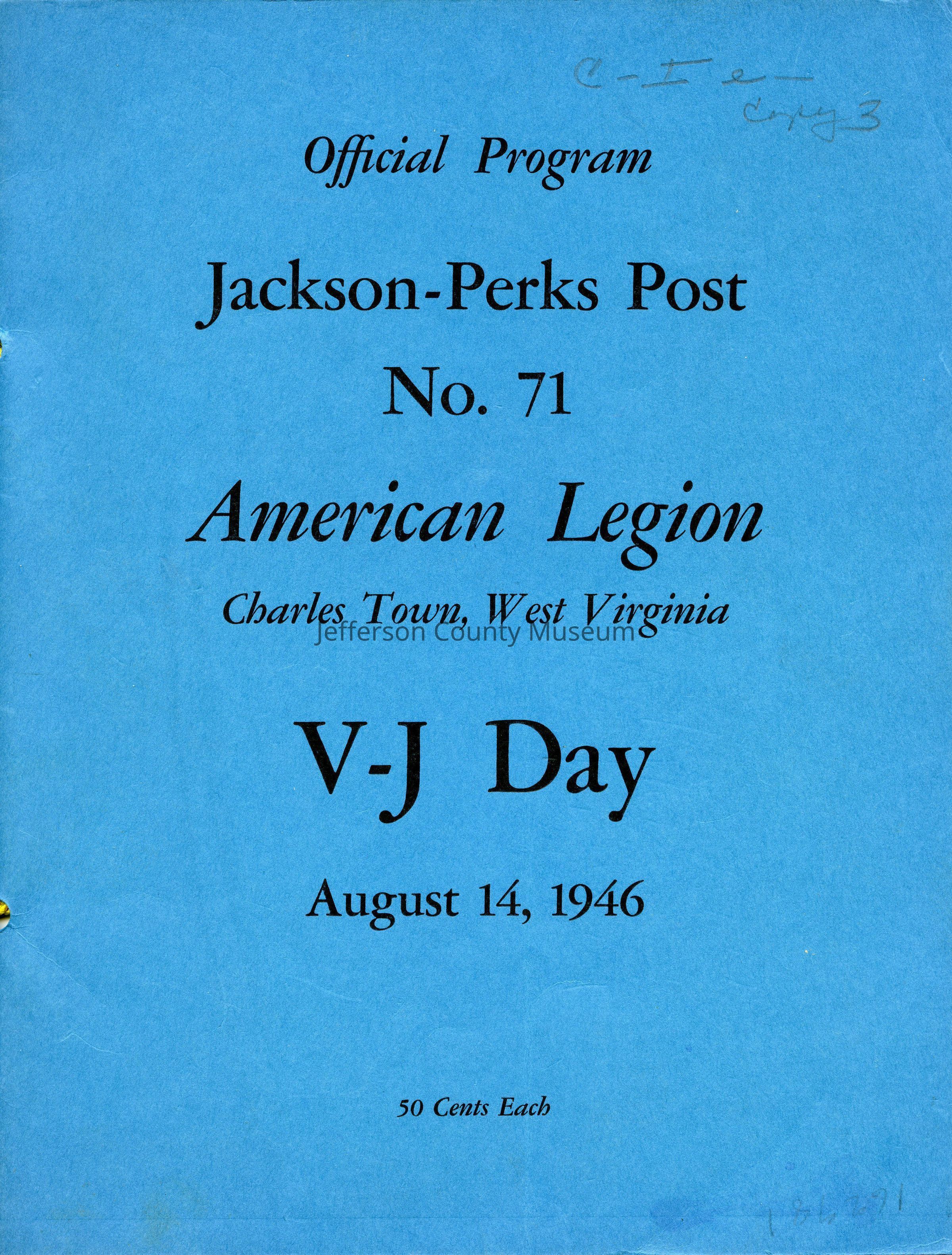 Official Program Jackson-Perks Post, No. 71, American Legion Charles Town, West Virginia V-J Day, August 14, 1946Entry/Object ID