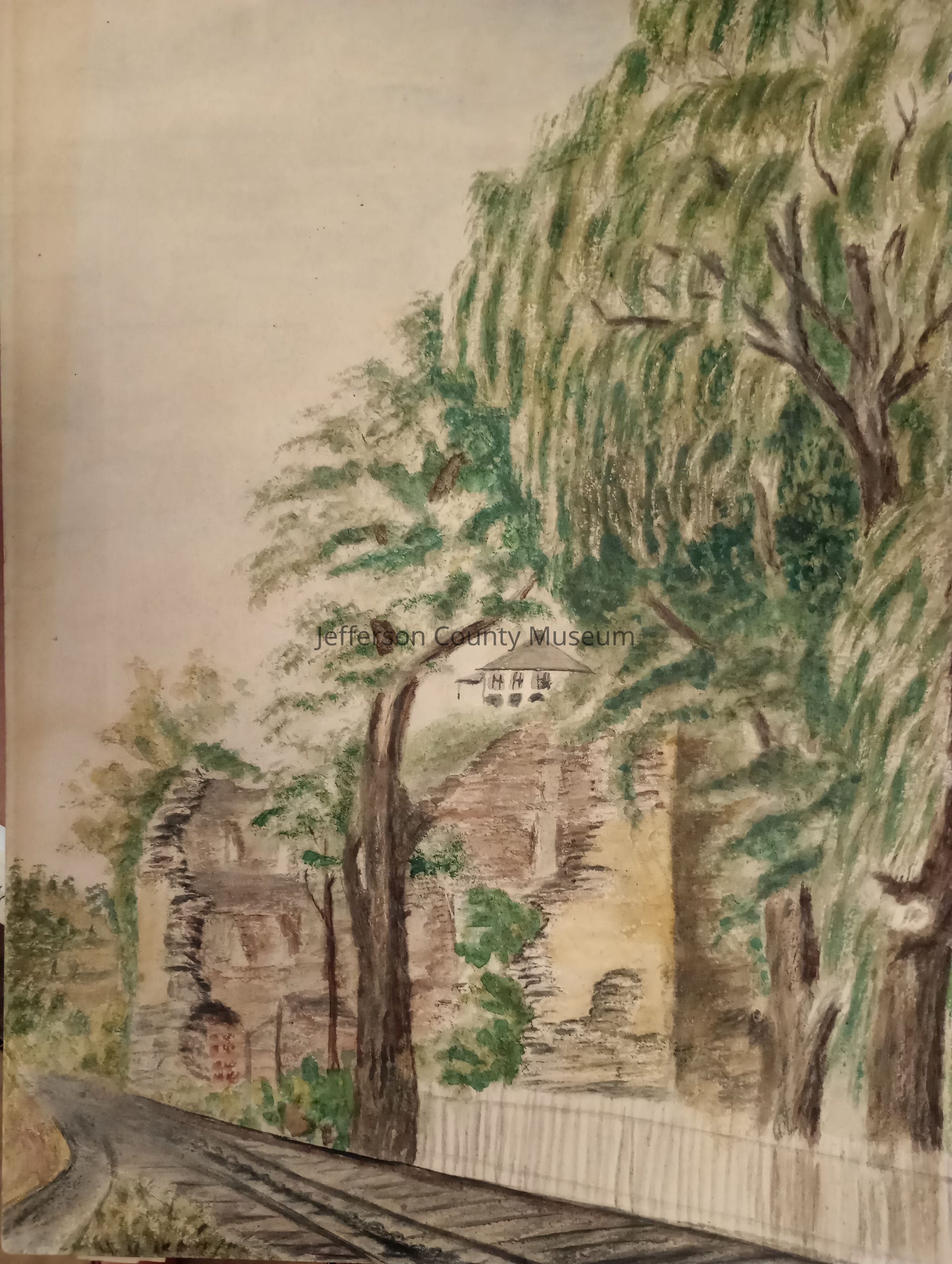 Watercolor of view looking up to the Bird-Brady House in Harpers FerryArtwork Details