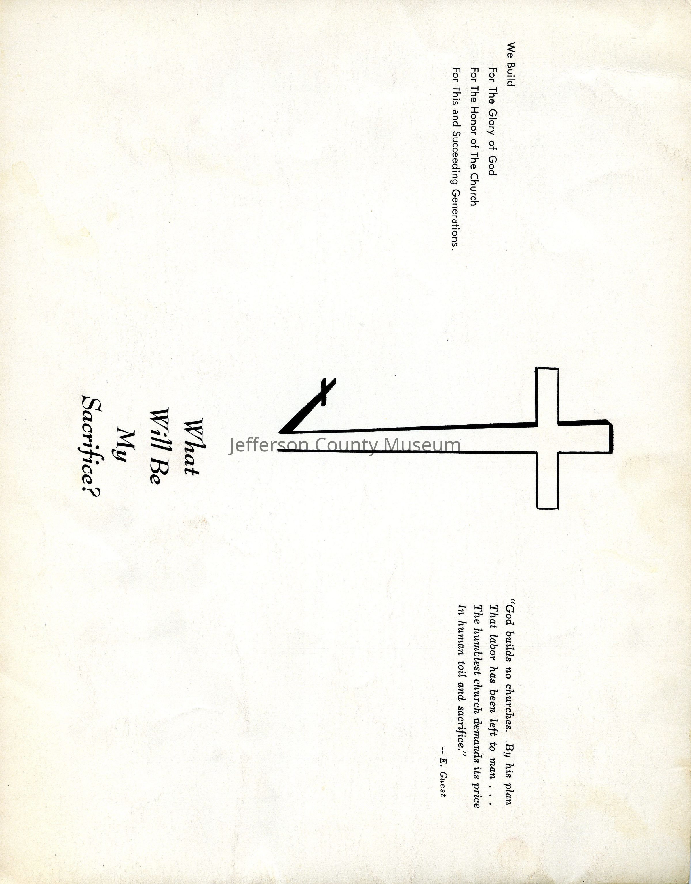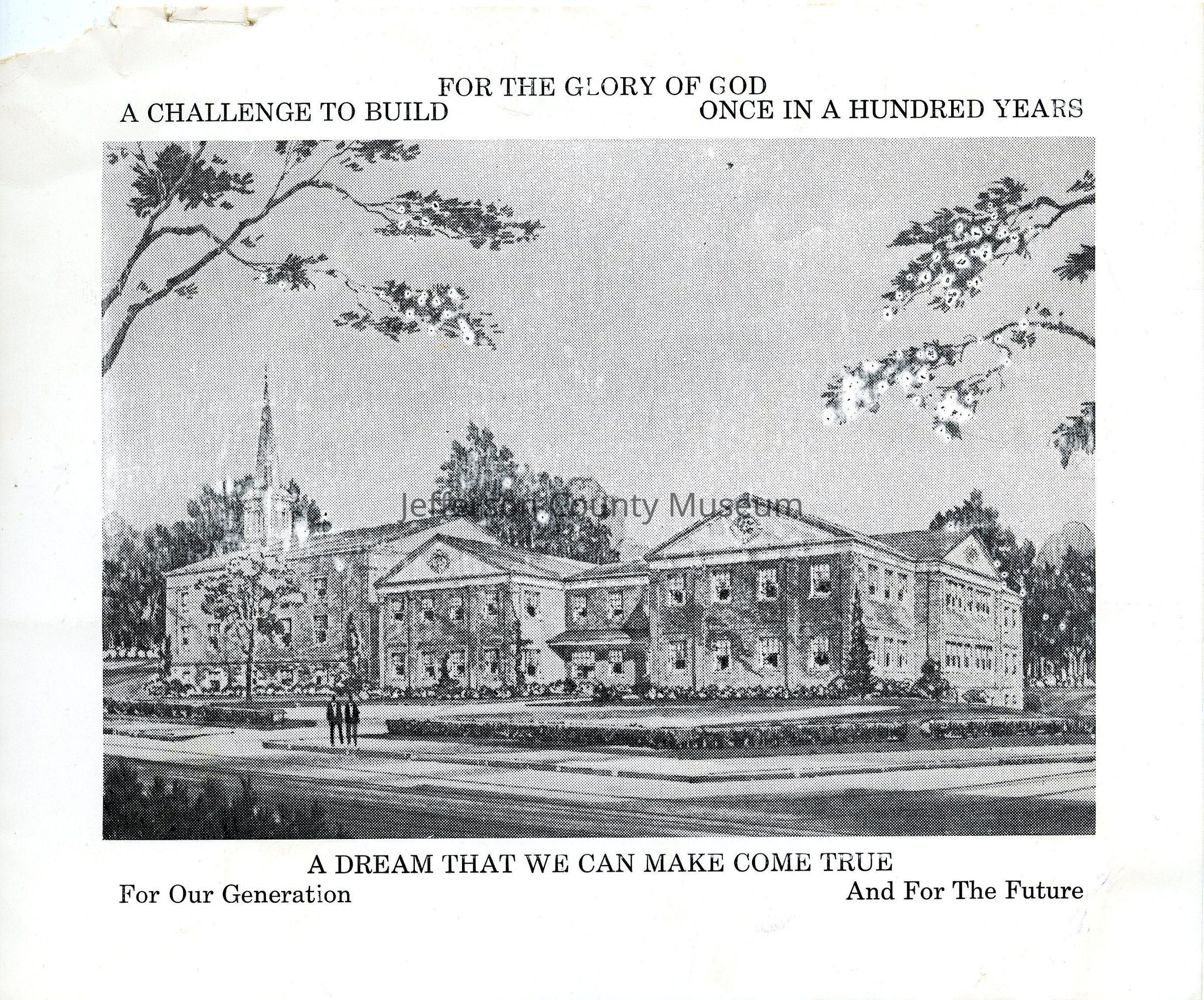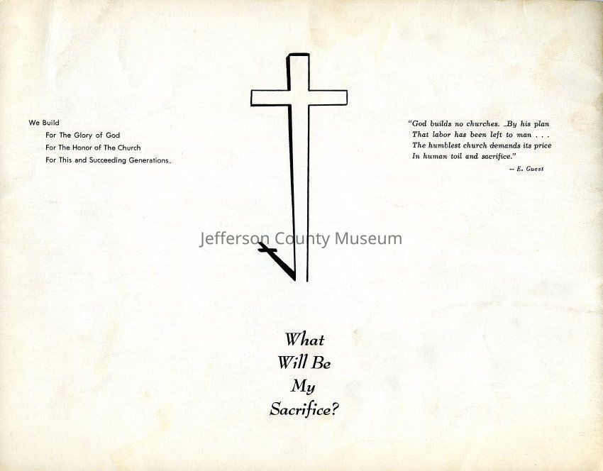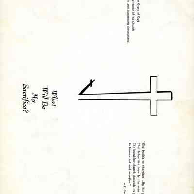 LIB619B- a small photograph insert, which shows a picture of the church and the words FOR THE GLORY OF GOD; A CHALLENGE TO BUILD; ONCE IN A HUNDRED YEARS; A DREAM THAT WE CAN MAKE COME TRUE; FOR OUR GENERATIONS; AND FOR THE FUTUREAcquisition