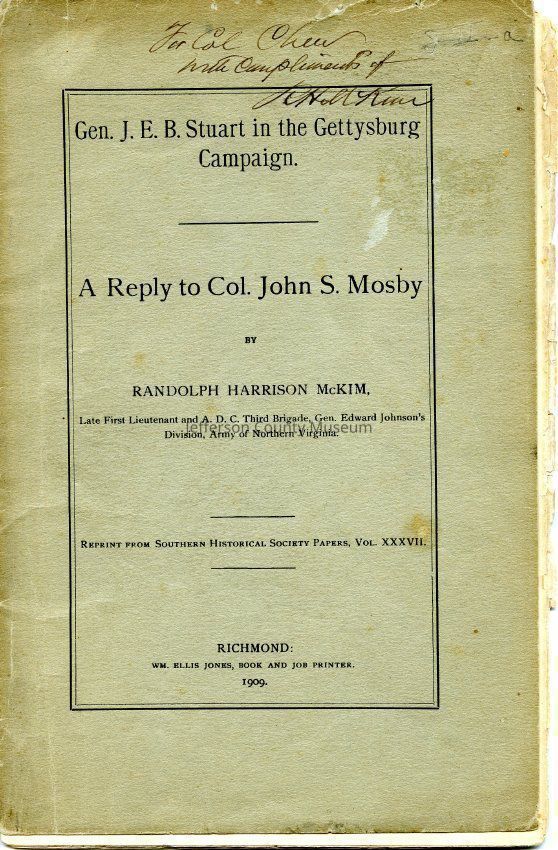 Reprint From Southern Historical Society Papers, Vol XXXVIIPublisher