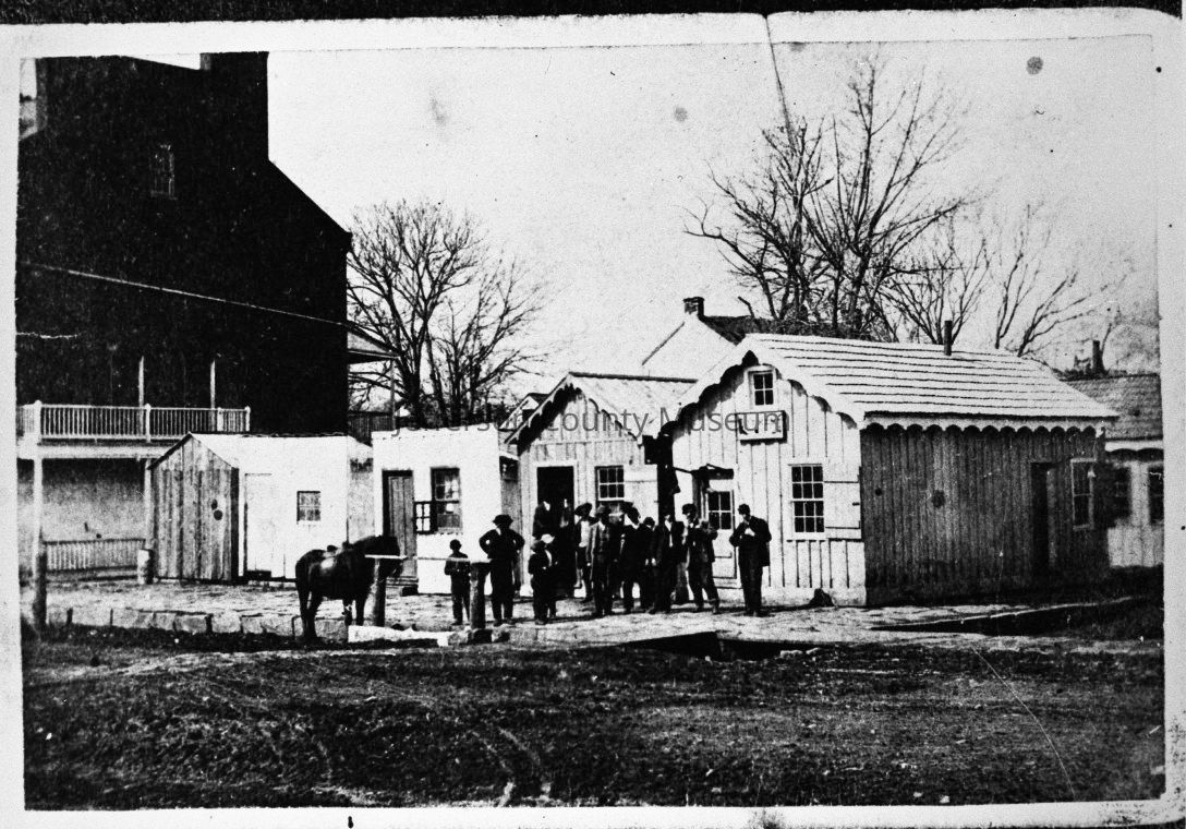 Temporary shops built on the site of the Market House (northwest corner George and Washington Streets). Shops removed in 1874 when Charles Washington Hall was built. See IMG12.