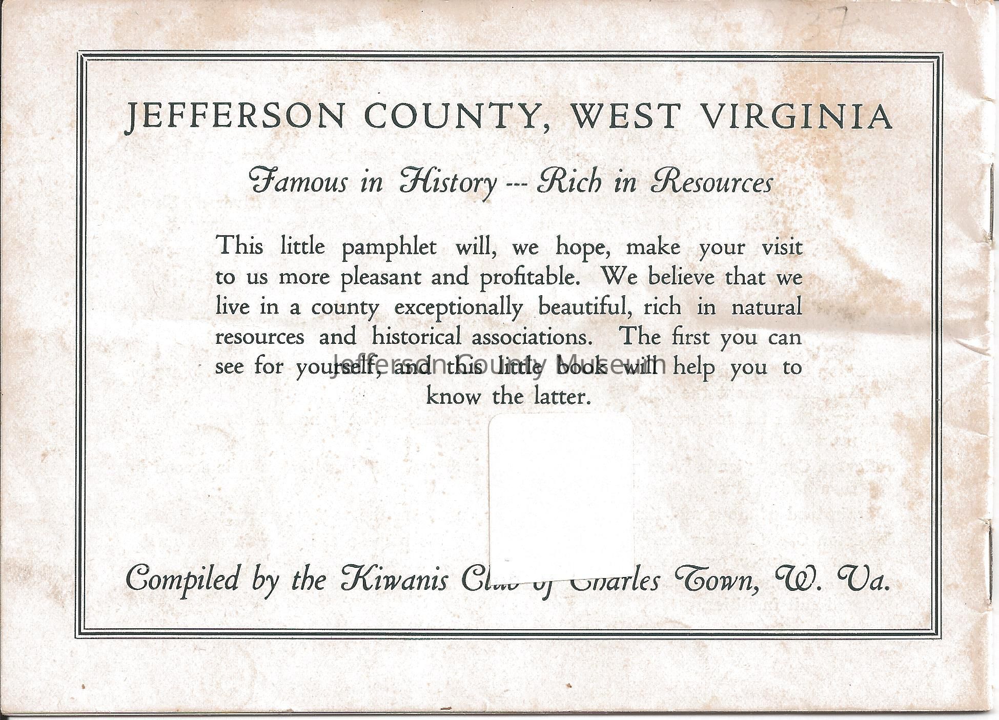 This booklet details historic towns, buildings, and events in Jefferson County, W. Va.Acquisition