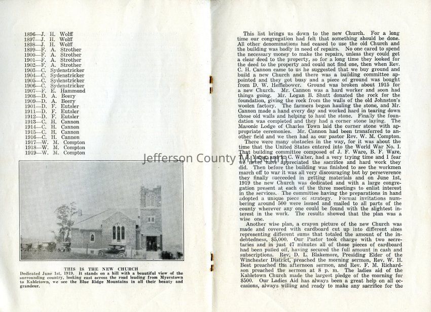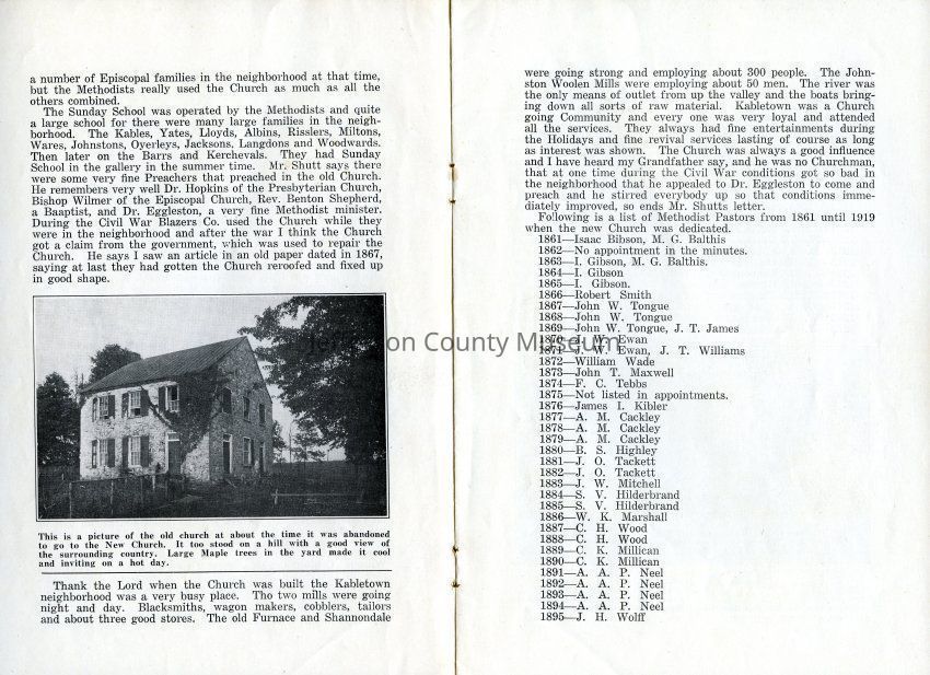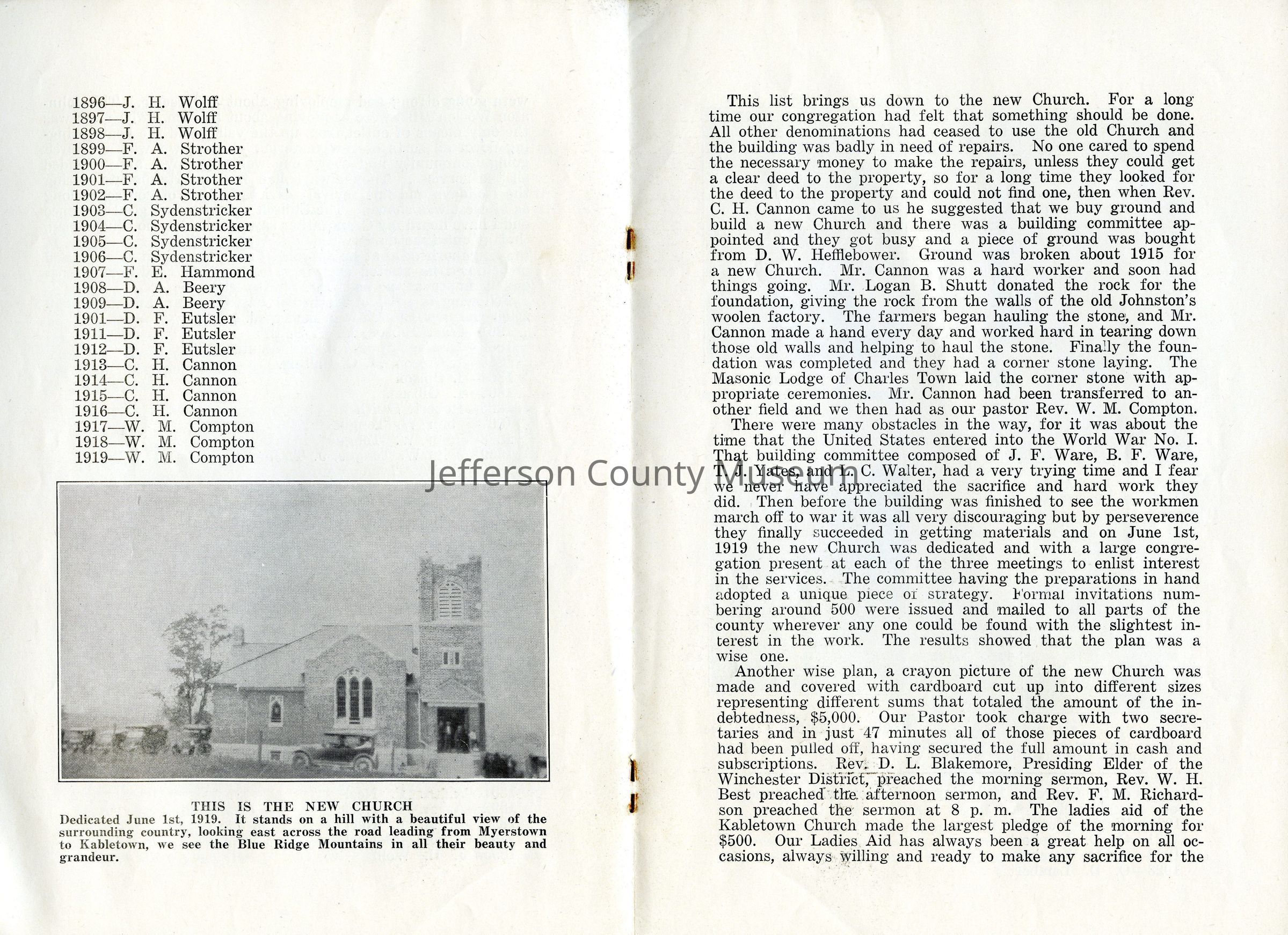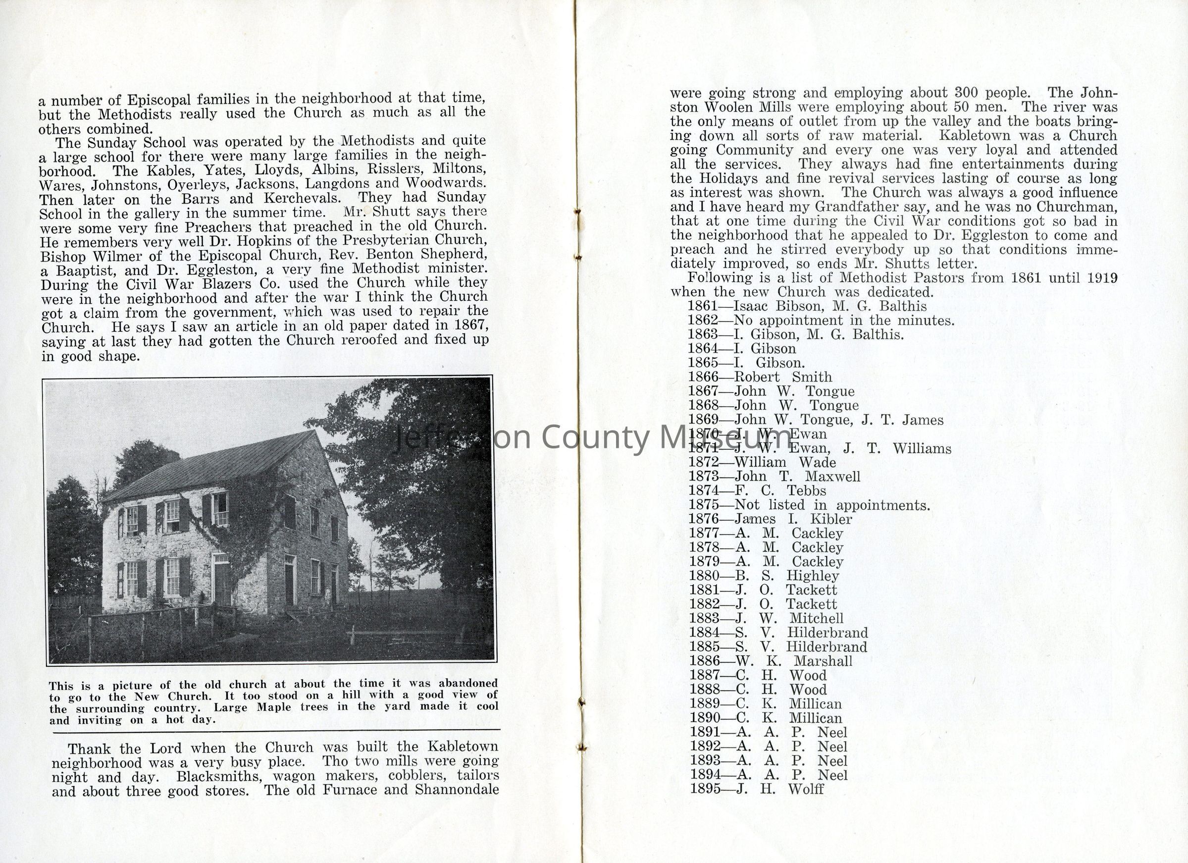 A brief history of the Methodist Church at Kabletown. Includes lists of pastors of the church since its founding circa 1861.Acquisition