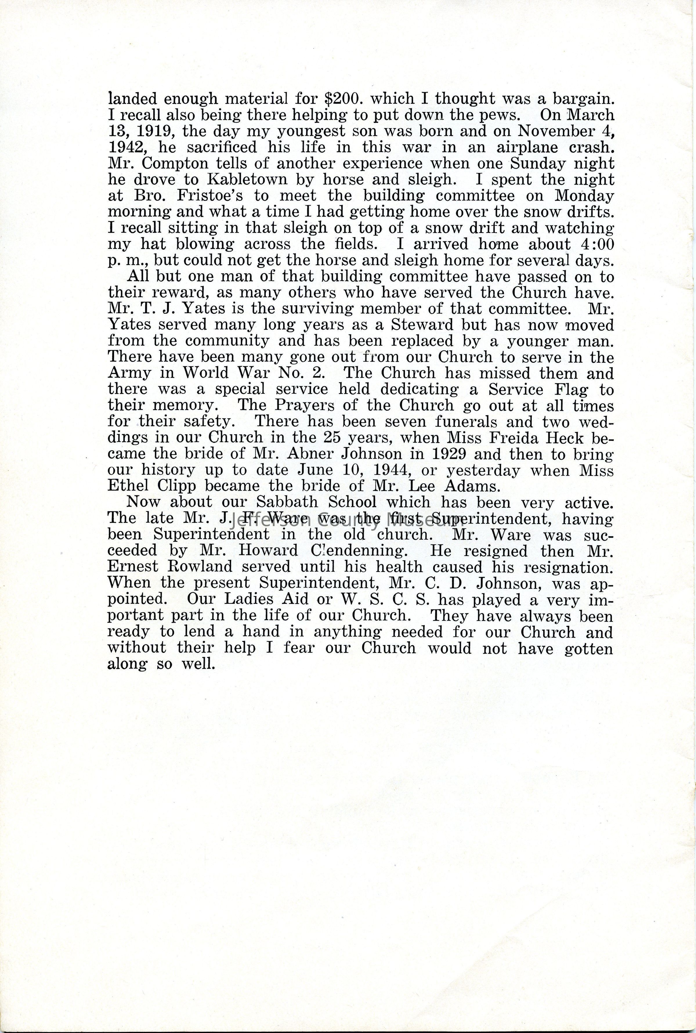 Brief History of the Methodist Church at Kabletown, AEntry/Object ID