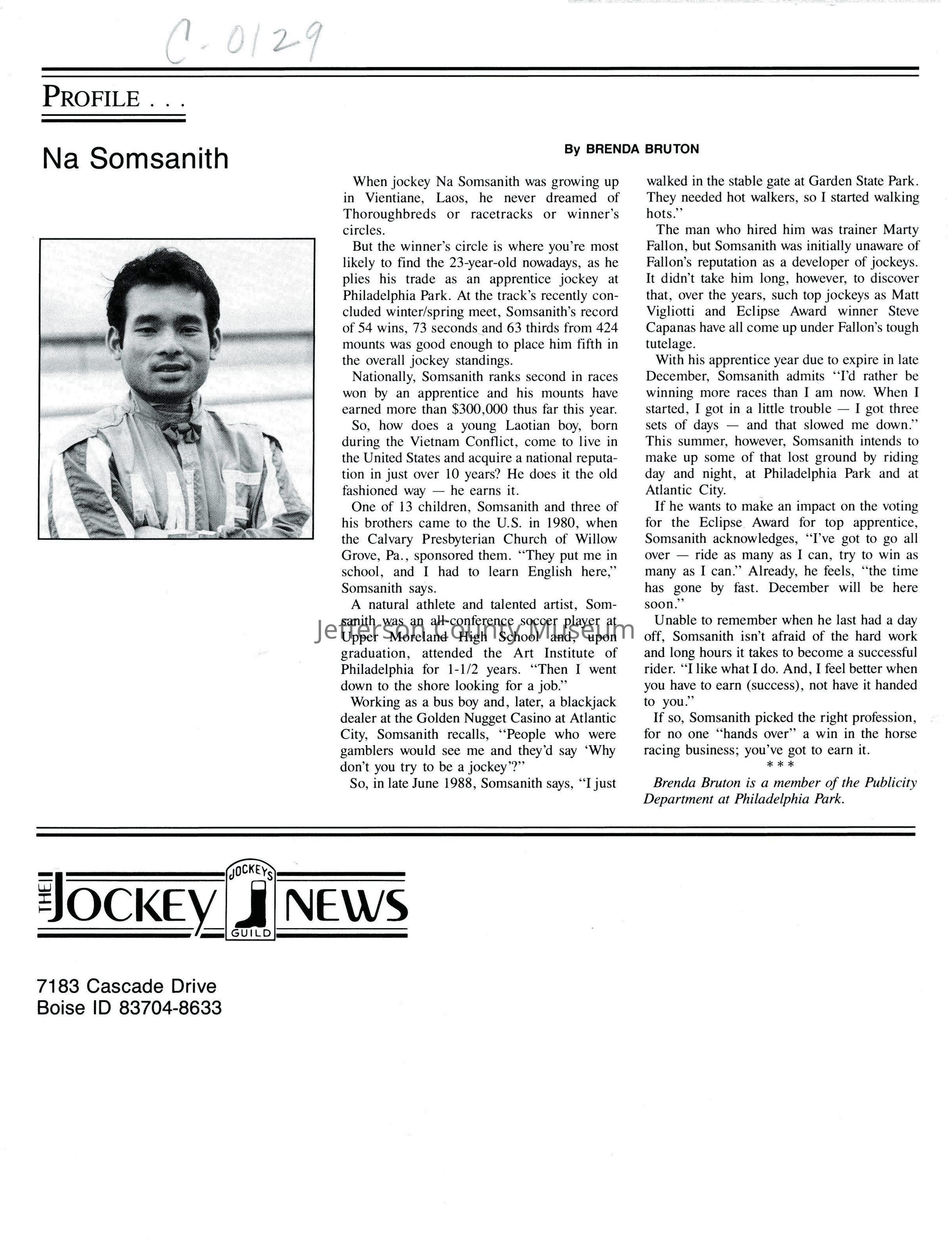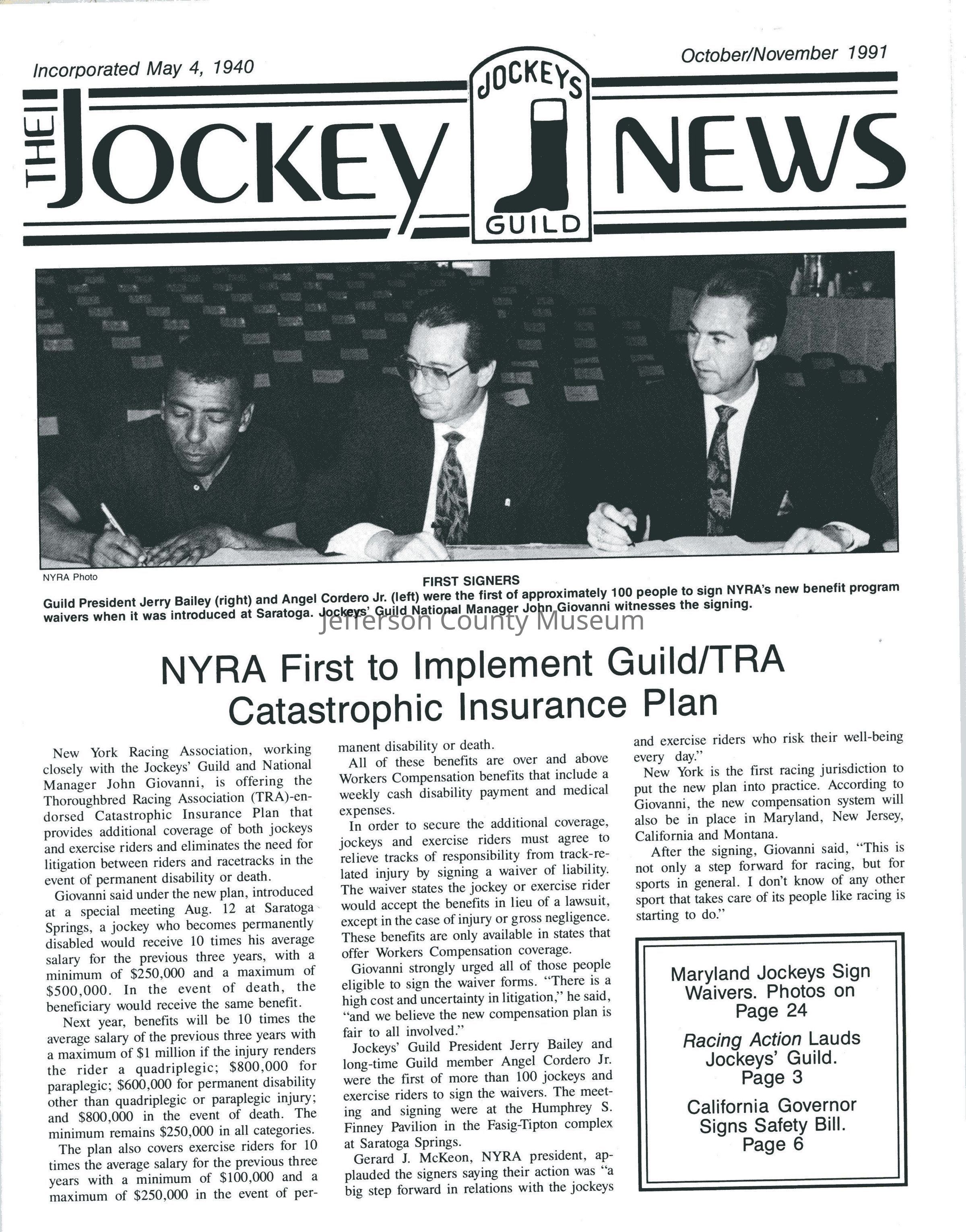 Article in October/November 1991 Jockey News, "Willie Clark Retires After 46 Years of Riding" by Paul Espinosa