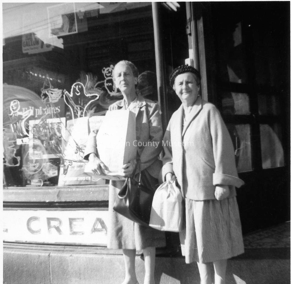 Anne Aldridge and Margaret Aldridge in front of Moffett's Pharmacy in 1965Acquisition