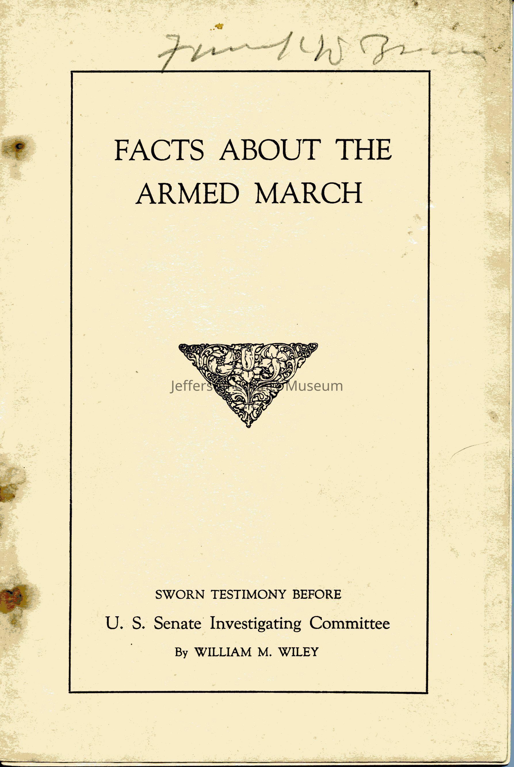 Facts About the Armed March: Sworn Testimony Before U. S. Senate Investigating Committee by William M. WileyEntry/Object ID