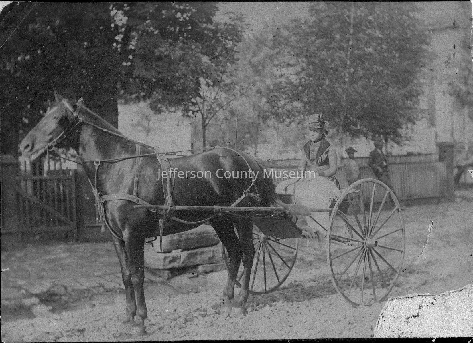Woman driving one-horse buggy