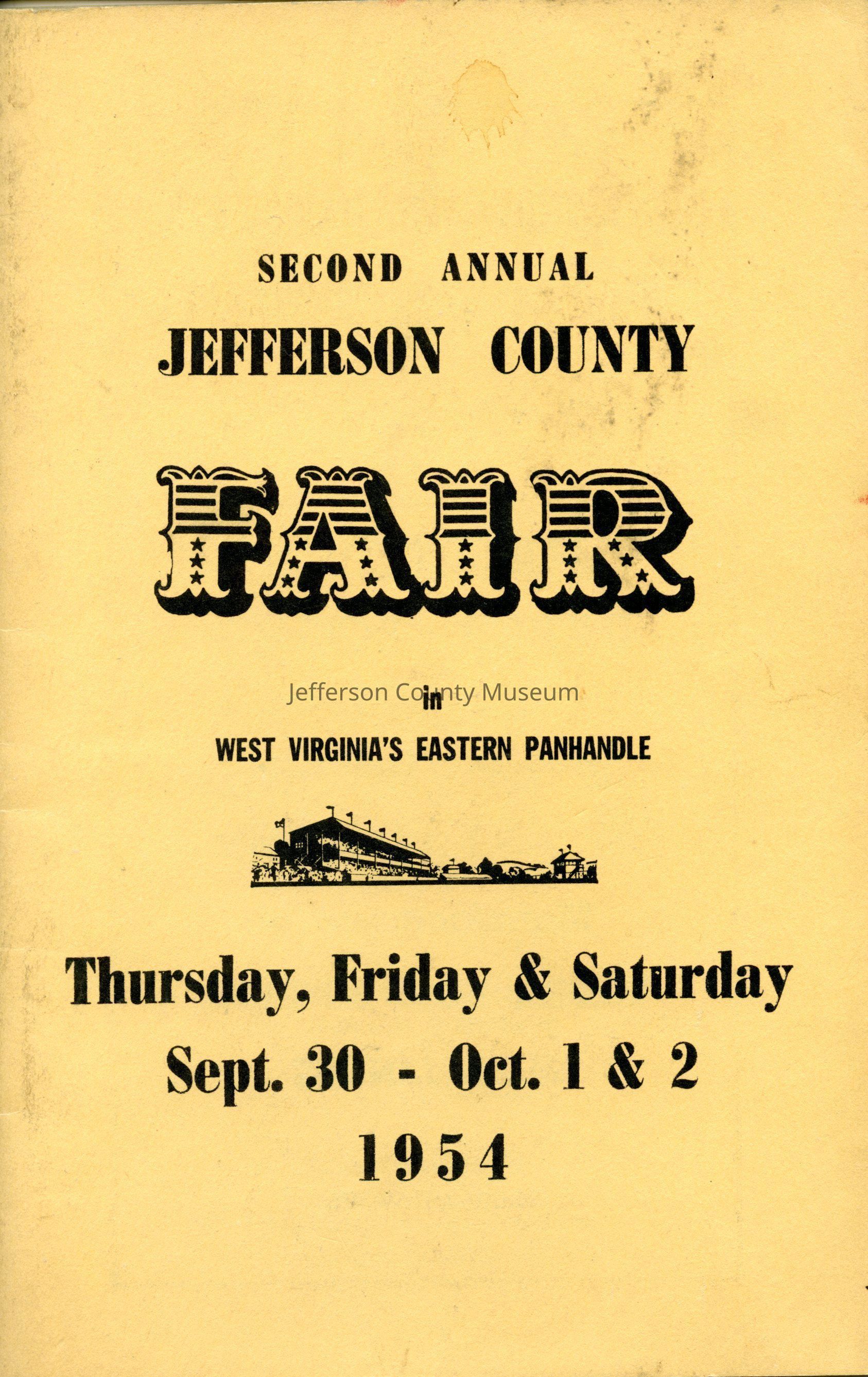 Second Annual Jefferson County Fair in West Virginia's Eastern Panhandle Thursday, Friday & Saturday, Sept. 30 - Oct. 1 & 2, 1954Entry/Object ID