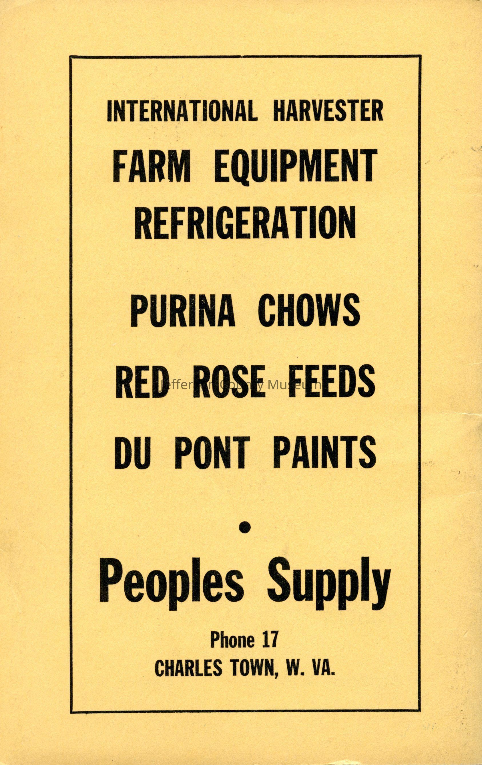 The program for the Jefferson County Fair contains a list of the board and the staff for the fair, rules for participation in the fair, a list of events, special awards, exhibits, and advertisements from merchants around the county.Acquisition
