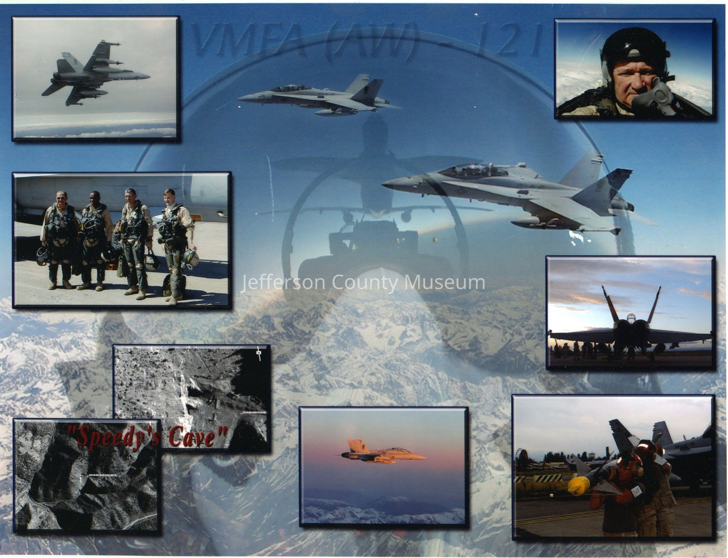 Photo collage from the VMFA (AW) - 121 to Wayne Lloyd with two patches mounted on heavy paper