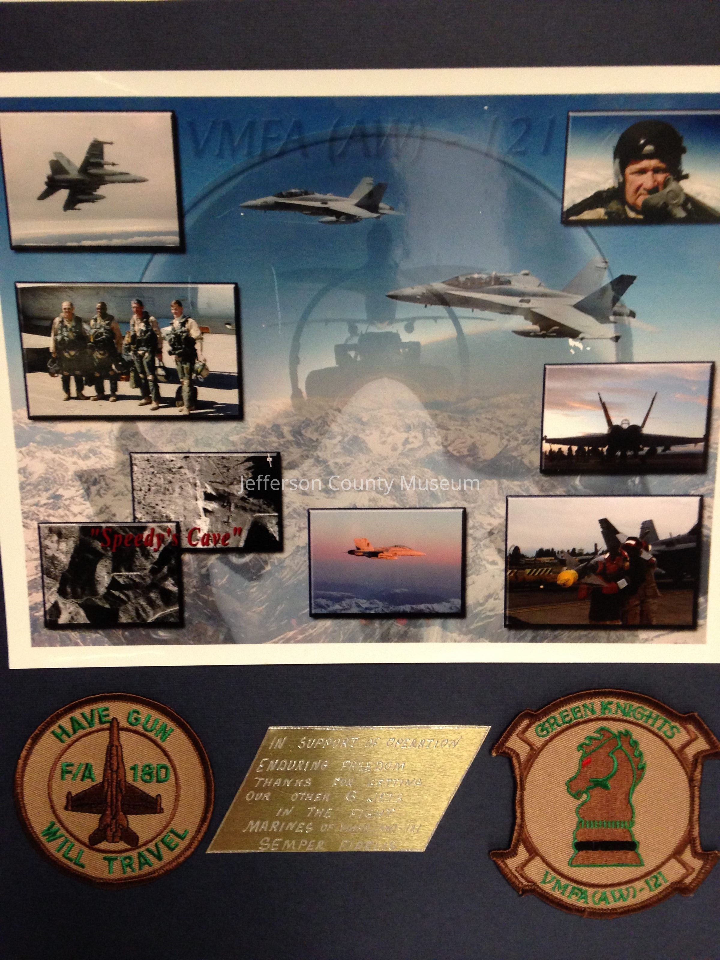 Inscription reads: In support of Operation Enduring Freedom, thanks for getting our other 6 jets in the fight, Marines of VMFA (AW) - 121, Semper Fidelis