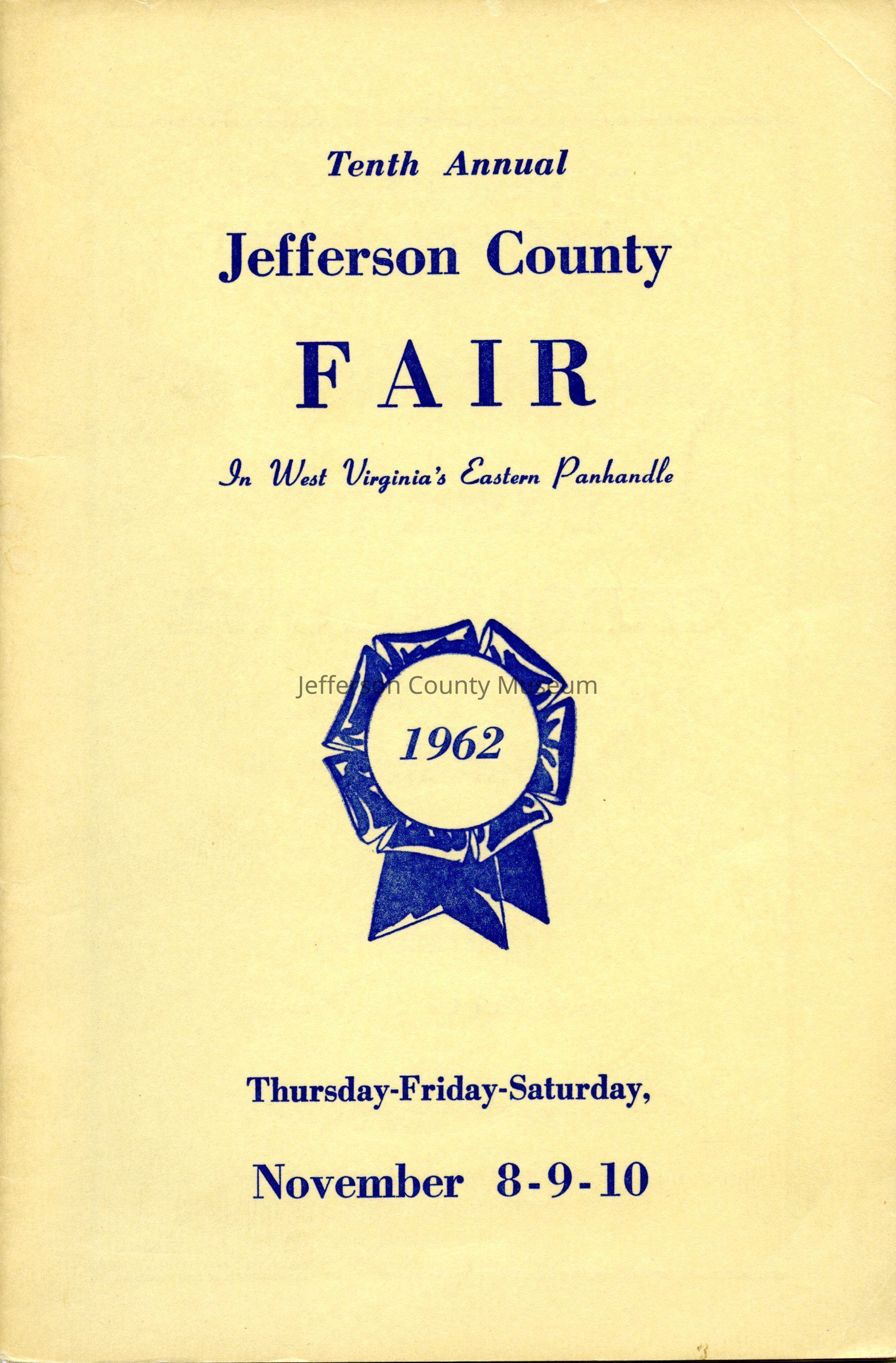 Tenth Annual Jefferson County Fair in West Virginia's Eastern Panhandle Thursday, Friday & Saturday, November 8-9-10, 1962Entry/Object ID