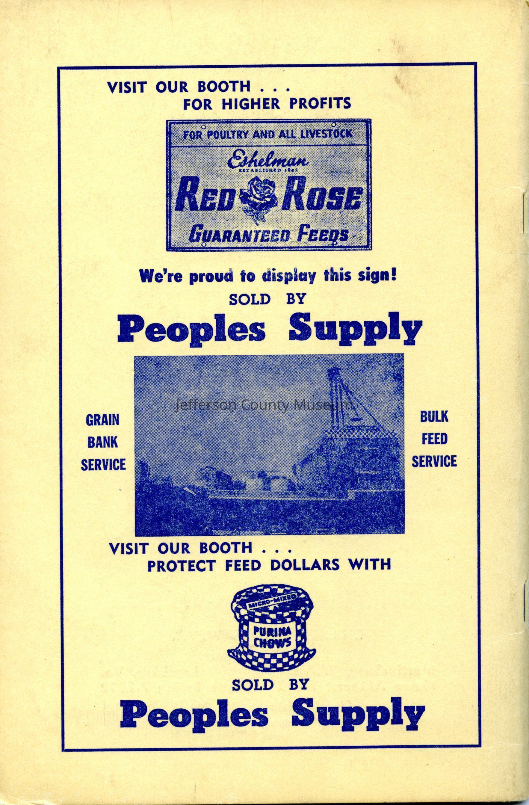 The program for the Jefferson County Fair contains a list of the board and the staff for the fair, rules for participation in the fair, a list of events, special awards, exhibits, and advertisements from merchants around the county.Acquisition