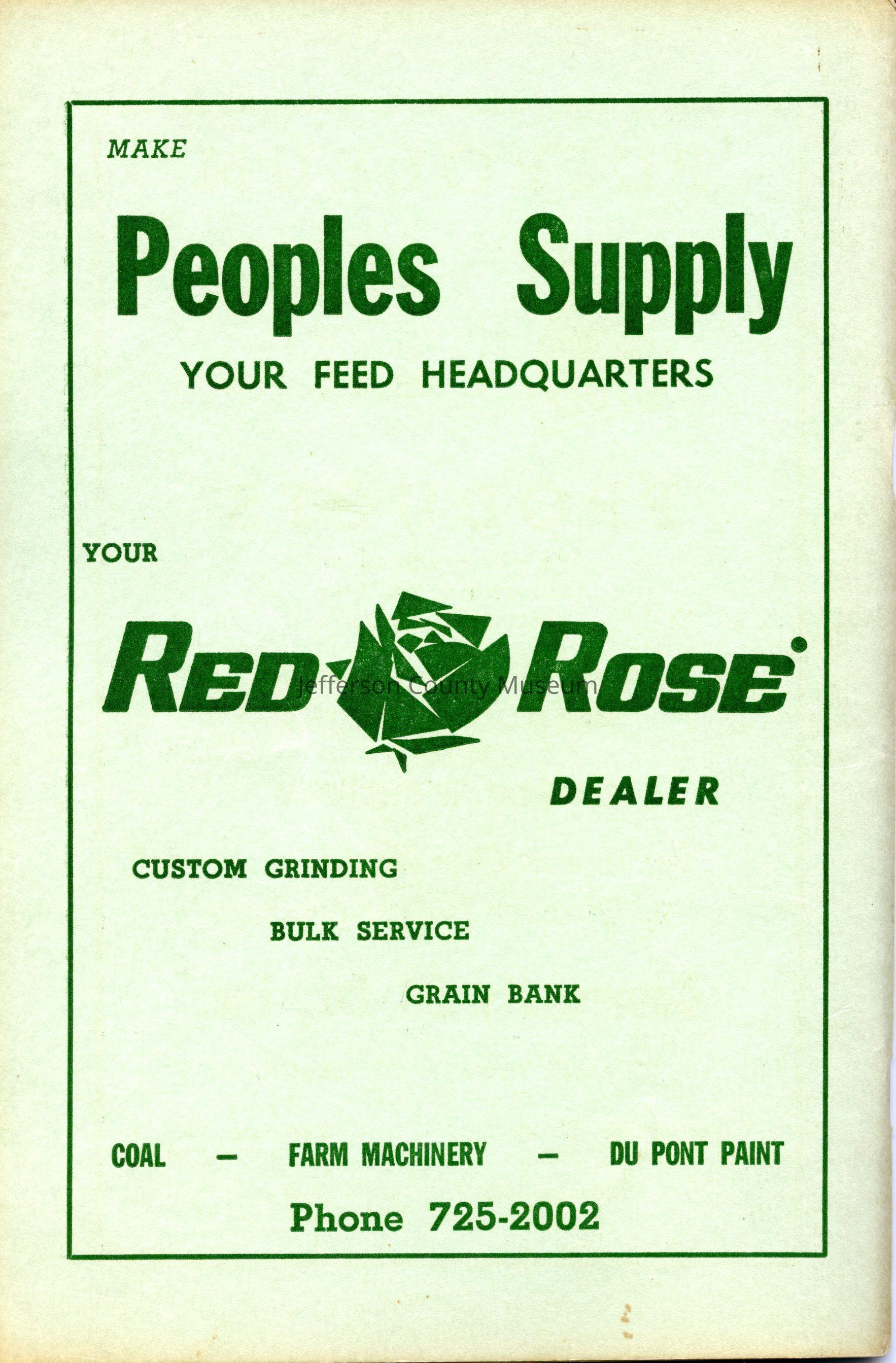 The program for the Jefferson County Fair contains a list of the board and the staff for the fair, rules for participation in the fair, a list of events, special awards, exhibits, and advertisements from merchants around the county.