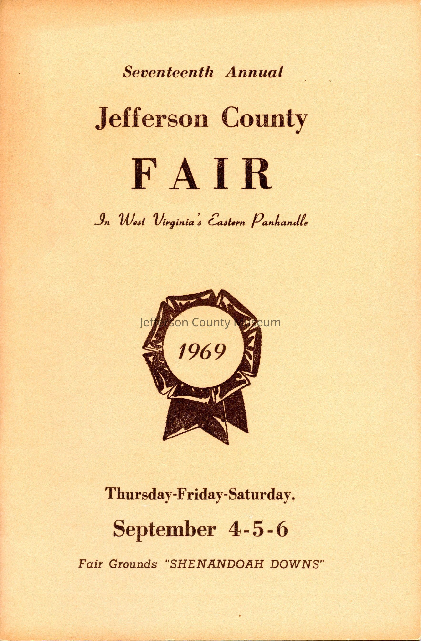 Seventeenth Annual Jefferson County Fair in West Virginia's Eastern Panhandle: Thursday-Friday-Saturday, September 4-5-6, 1969Entry/Object ID