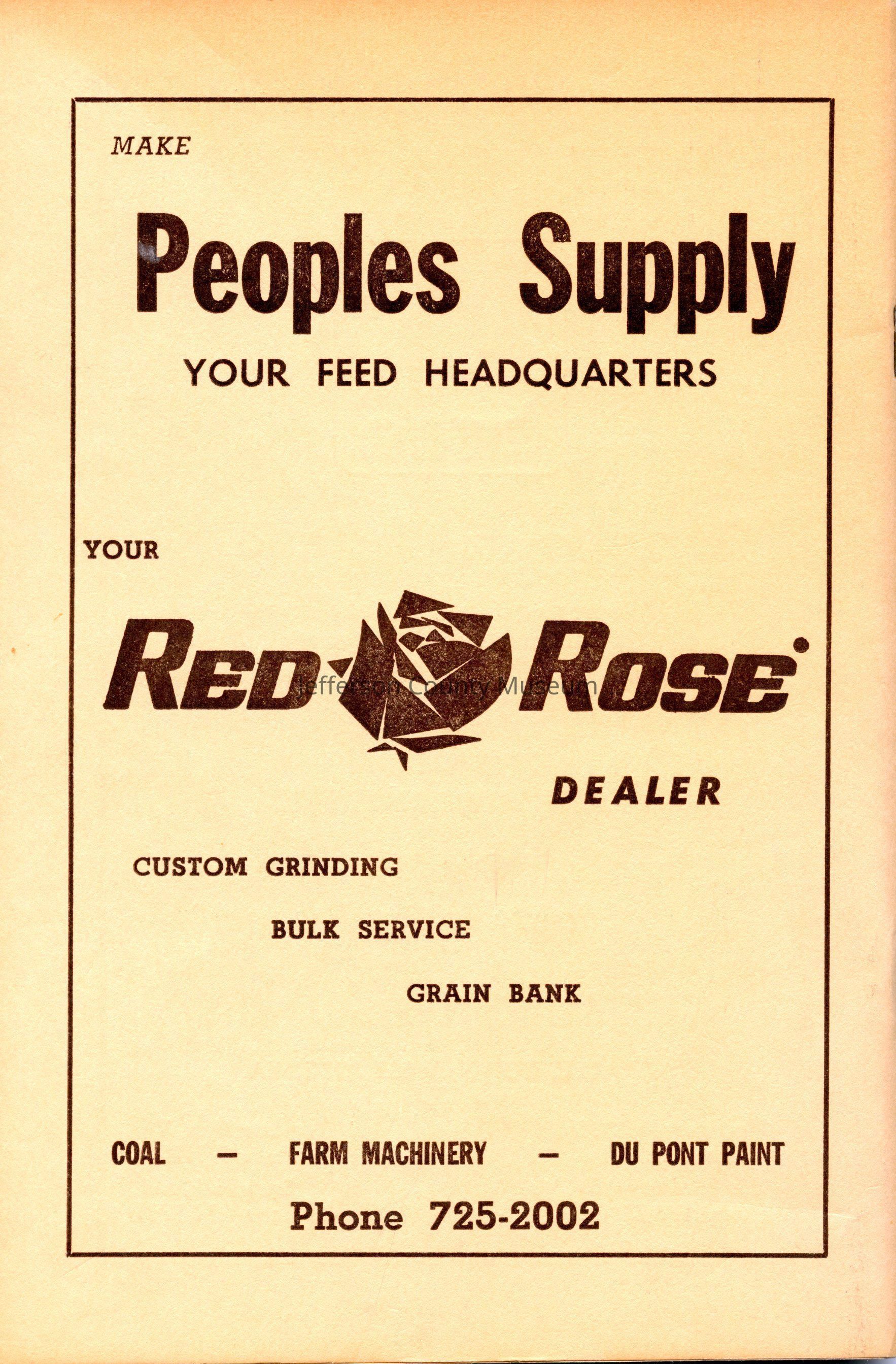 The program for the Jefferson County Fair contains a list of the board and the staff for the fair, rules for participation in the fair, a list of events, special awards, exhibits, and advertisements from merchants around the county.Acquisition