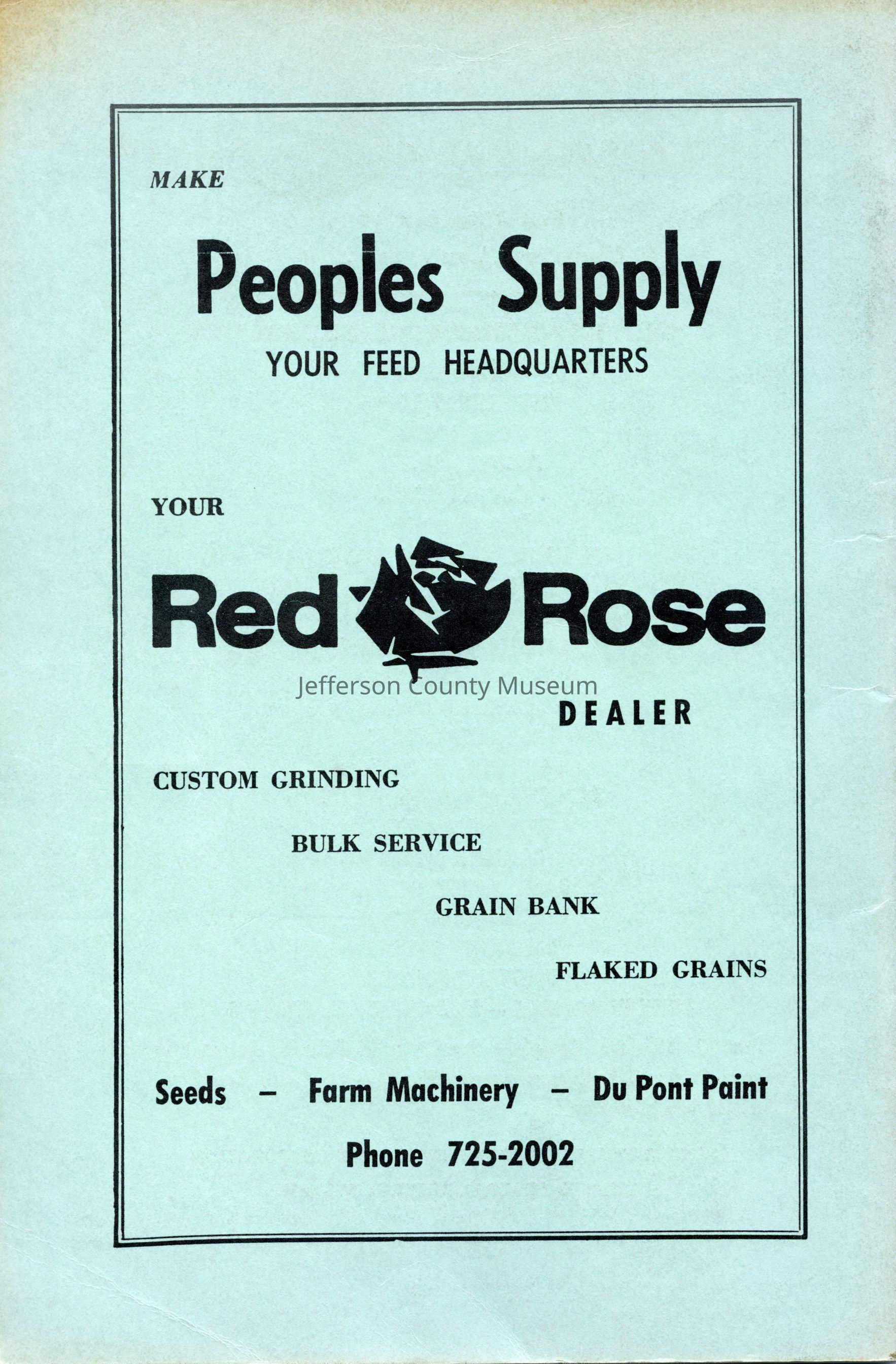 The program for the Jefferson County Fair contains a list of the board and the staff for the fair, rules for participation in the fair, a list of events, special awards, exhibits, and advertisements from merchants around the county.Acquisition