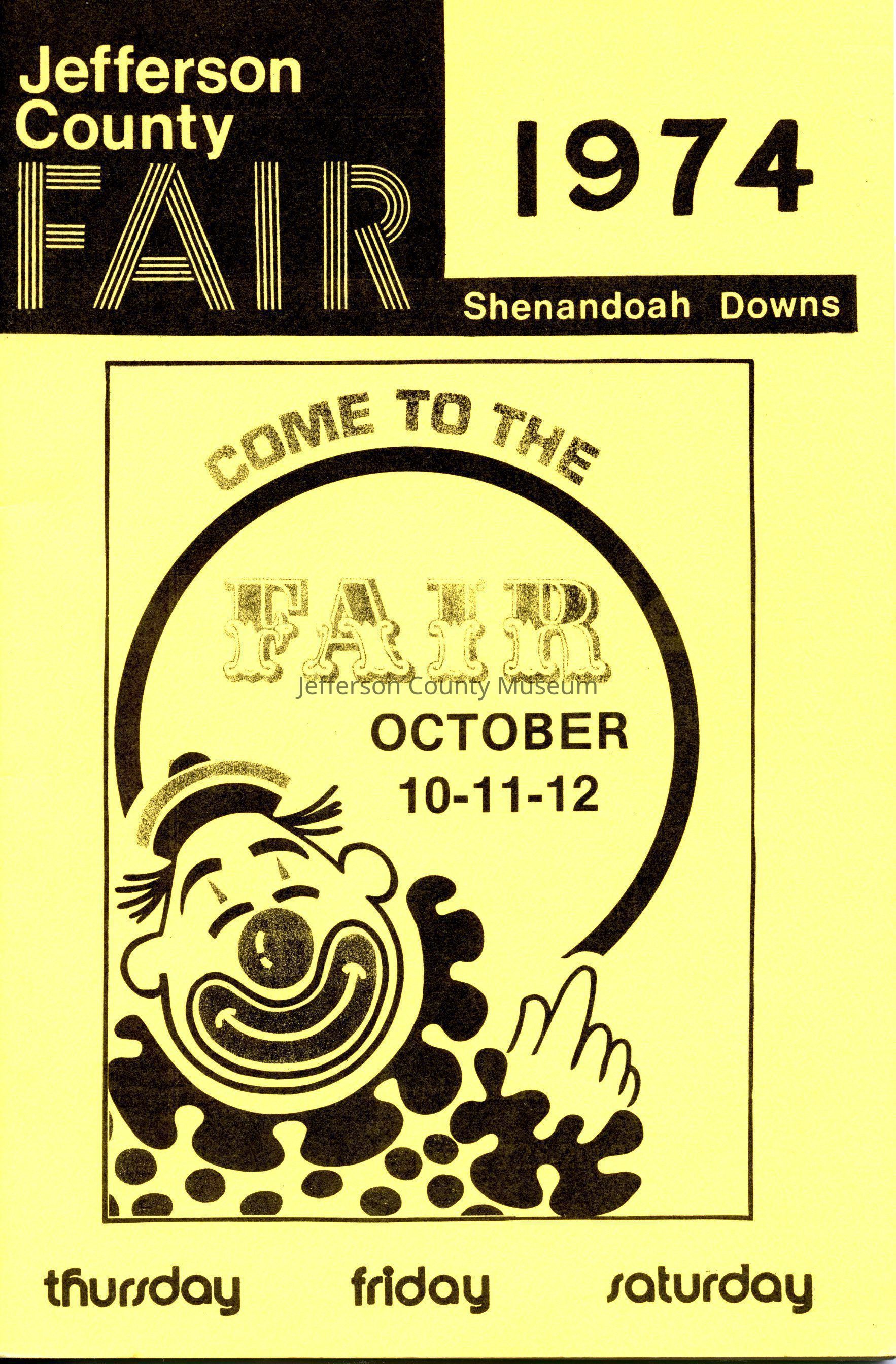 1974 Jefferson County Fair: Shenandoah Downs Come to the Fair October 10-11-12Entry/Object ID