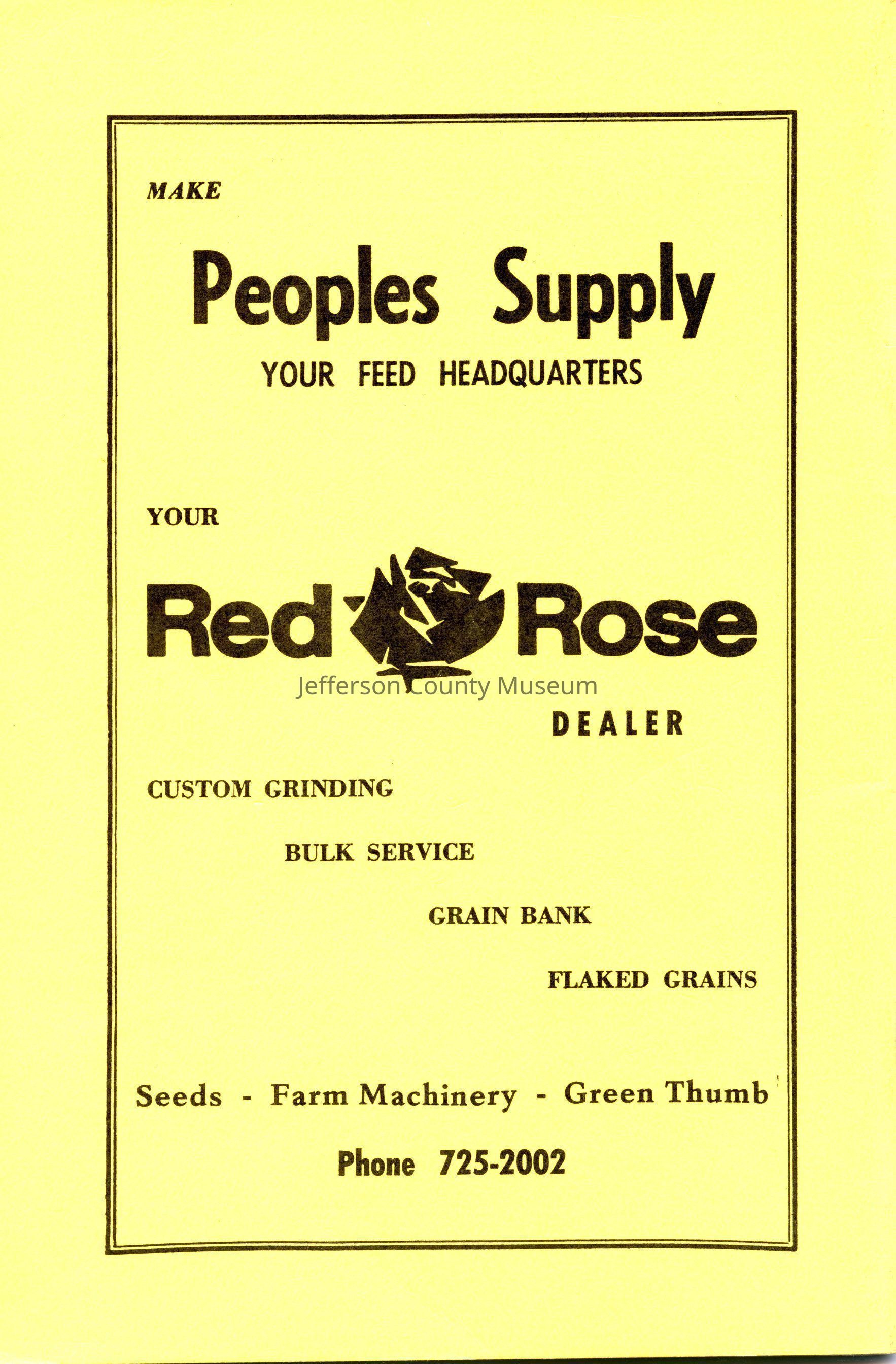 The program for the Jefferson County Fair contains a list of the board and the staff for the fair, rules for participation in the fair, a list of events, special awards, exhibits, and advertisements from merchants around the county.Acquisition