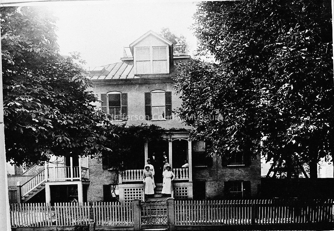 First Charles Town Hospital, formerly the home of Dr. Richard Venning. 1st row: Valley Markle and Mrs. Bates Hammond; 2nd row: Anna Hughes and Pearl Warming; 3rd row: Dr. A. O. Albin, Dr. Richard Edmondston Venning, and Laura _____ (seated).