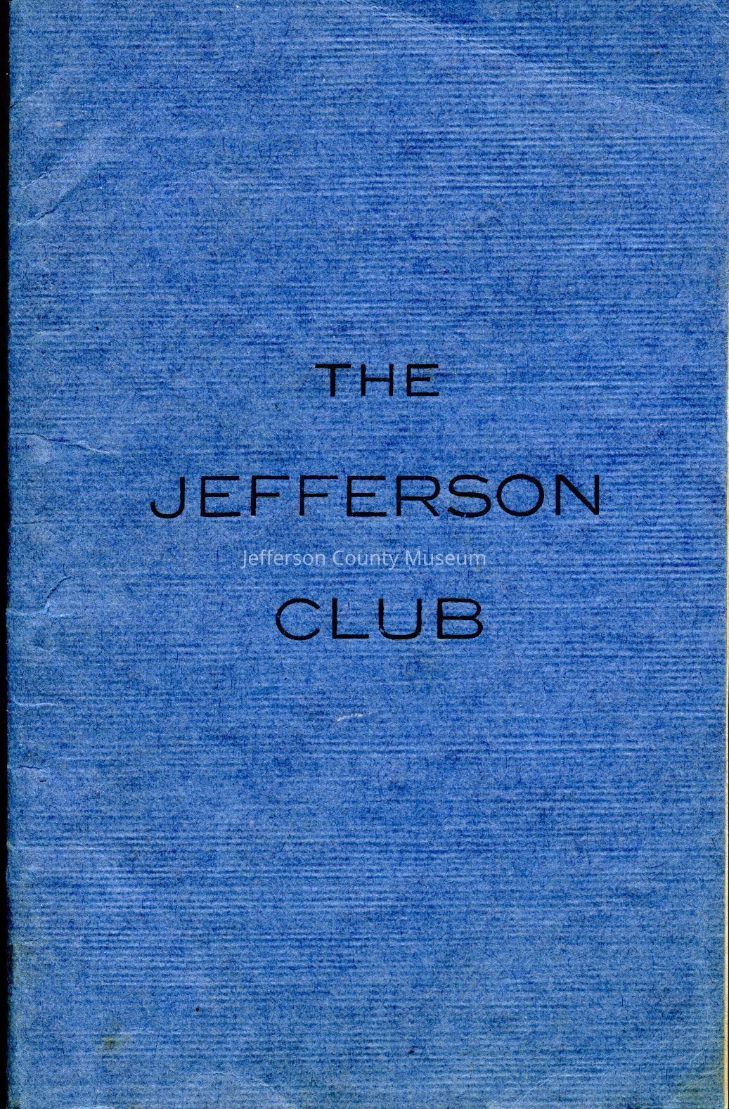 This pamphlet contains the charter, constitutions, by-laws, house rules, and lists of offiers and members of The Jefferson Club for the 1911 year.Acquisition