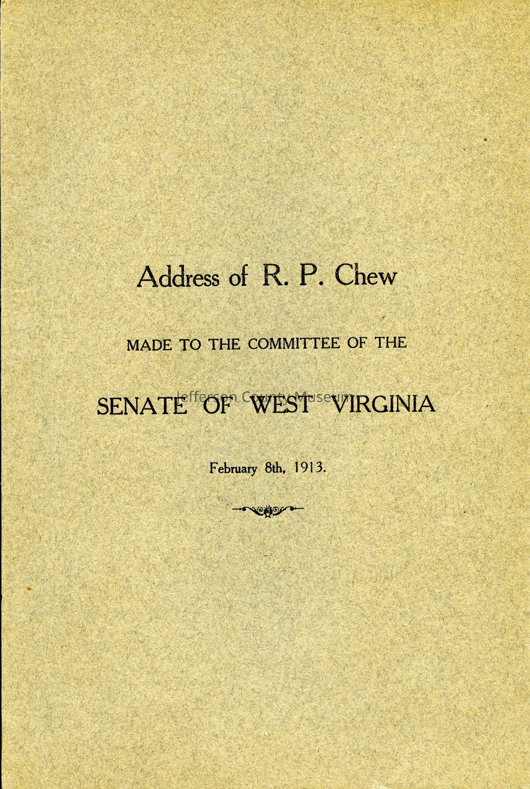 Address of R. P. Chew Made to the Committee of the Senate of West Virginia Fenruary 8, 1913Entry/Object ID
