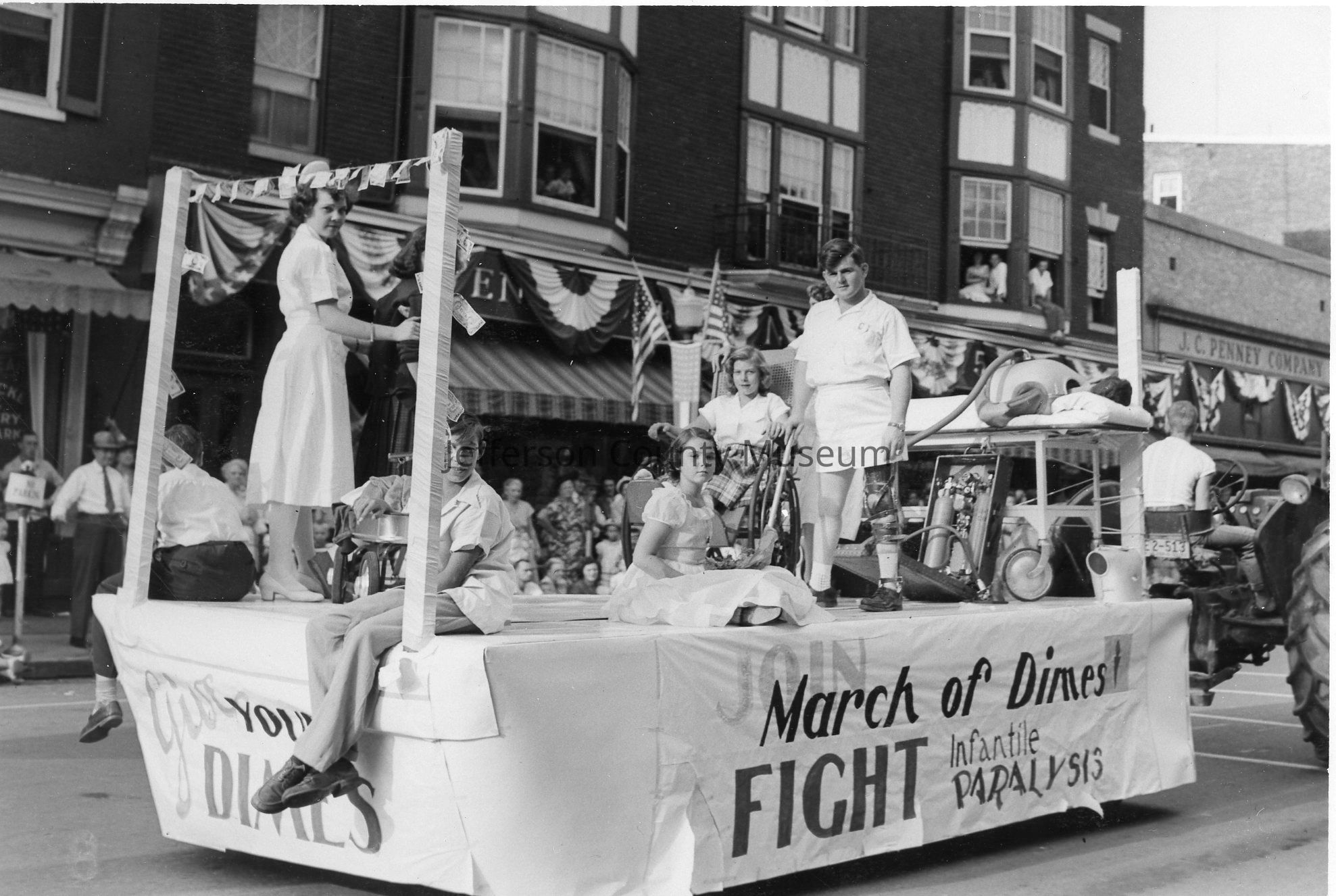 Jefferson County Sesquicentennial celebrations - March of Dimes float " Fight Infantile Paralysis - Give your dimes "Acquisition